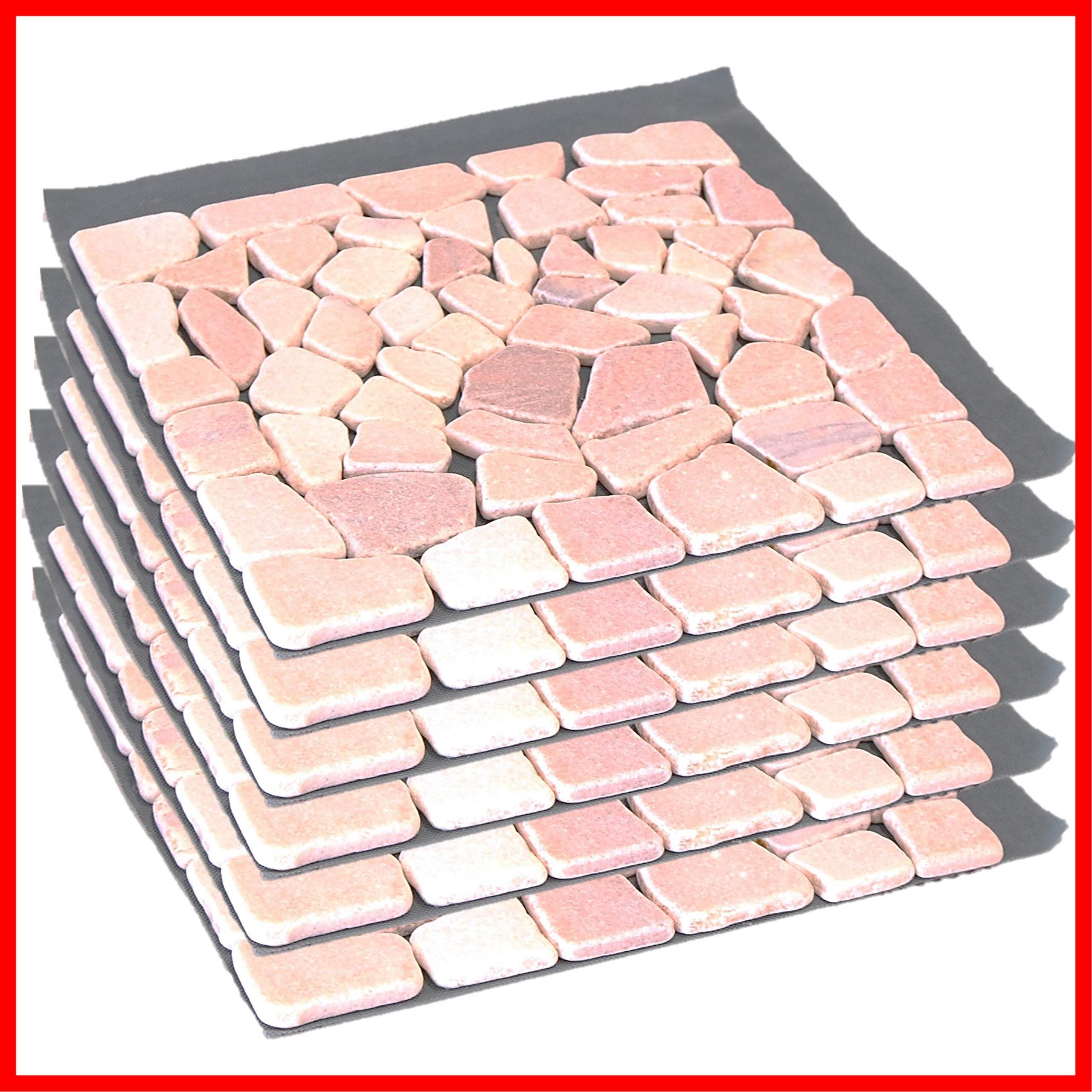 リビングアウト(Living Out) 天然石マット ピンク 本体: 奥行30.5cm 高さ1cm 幅30.5cm 6枚セット 防草シート付 敷くだけ 大理石 カット可能 正方形 | ニコニコshops