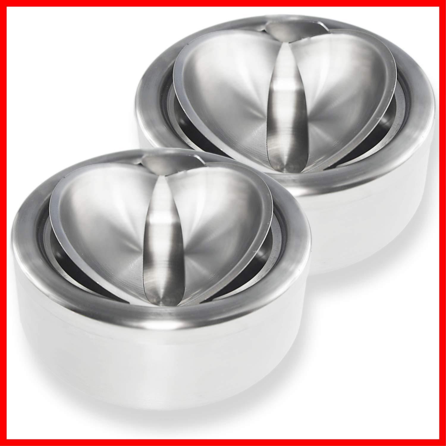 灰皿 ふた付き [ ステンレス製 1個or2個 ] おしゃれ 卓上 蓋つき灰皿 開閉タイプ 大容量 はいざら シルバー 屋内 屋外 兼用 蓋付き灰皿 煙を遮断 吸い殻入れ 【BEST TOWN】 (2個) | ニコニコshops