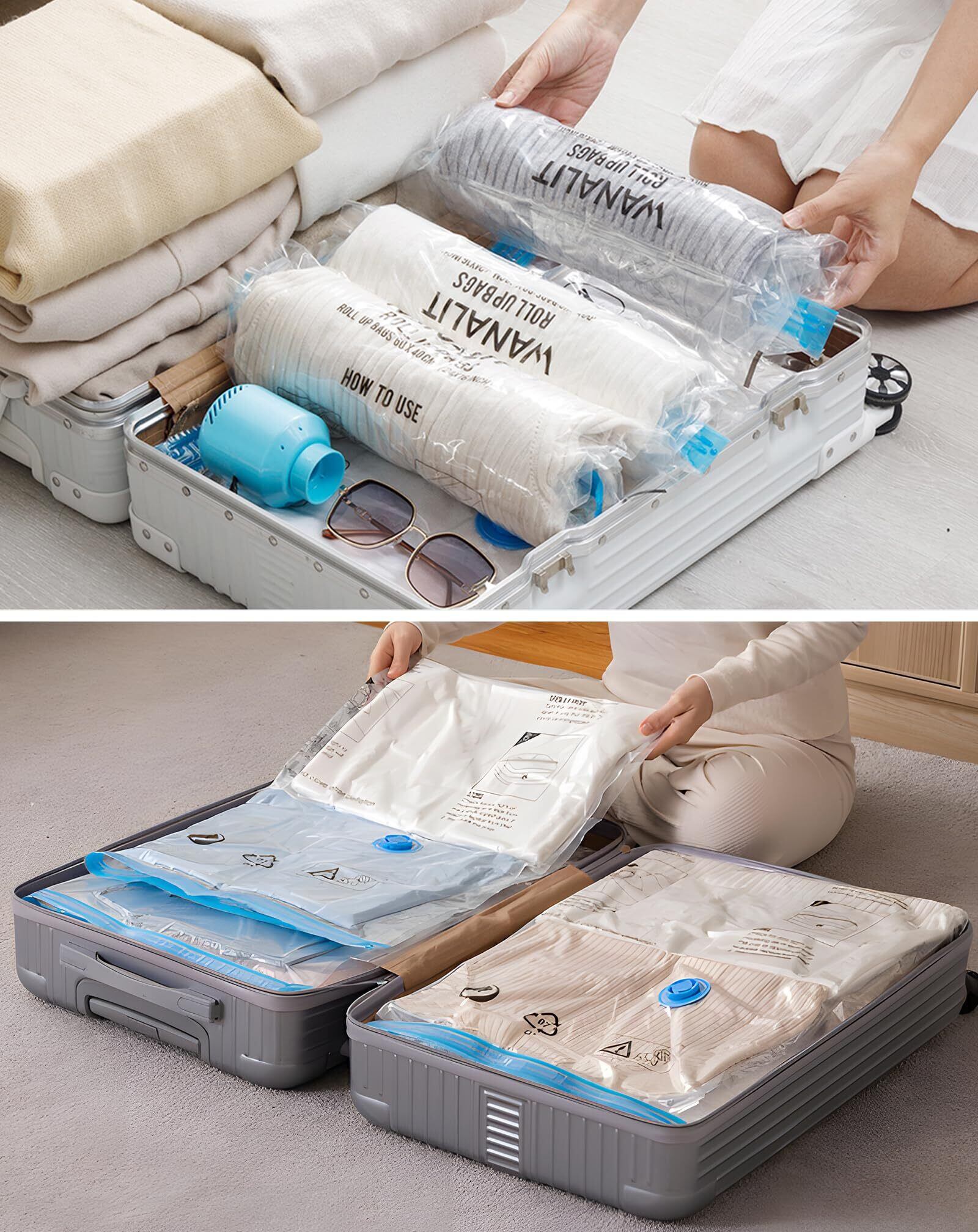 【容量を80%削減する布団圧縮袋】当社の衣類圧縮袋は、クローゼットの整理や衣類の収納に最適です。使用することで、寝室やアパートメントが整頓され、広々とした空間を実感できます。また、旅行時には旅行用圧縮袋としてスーツケースに効率的に荷物を詰め込むことができます。厚くて丈夫なポリエステル素材を使用しており、何度でも繰り返し使用でき、衣類を長期間保管することが可能です。