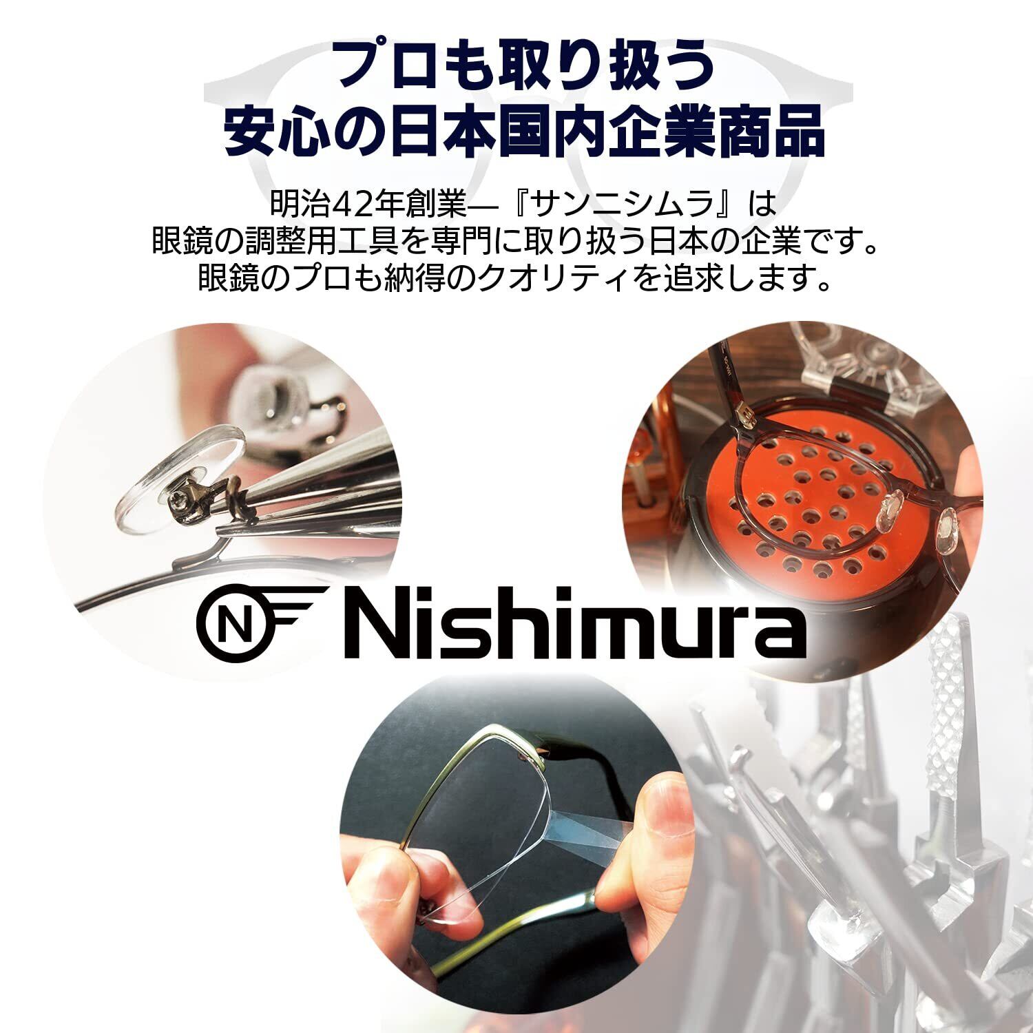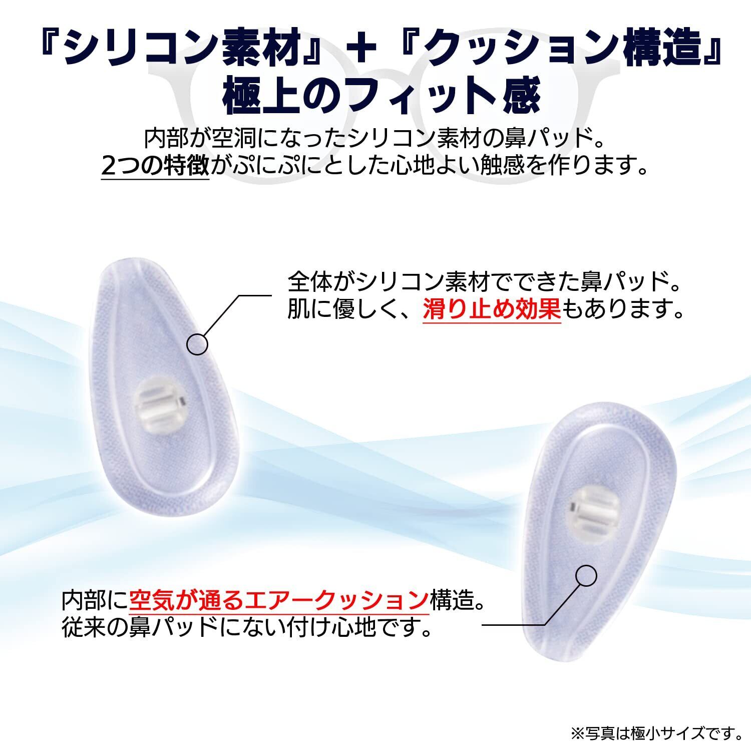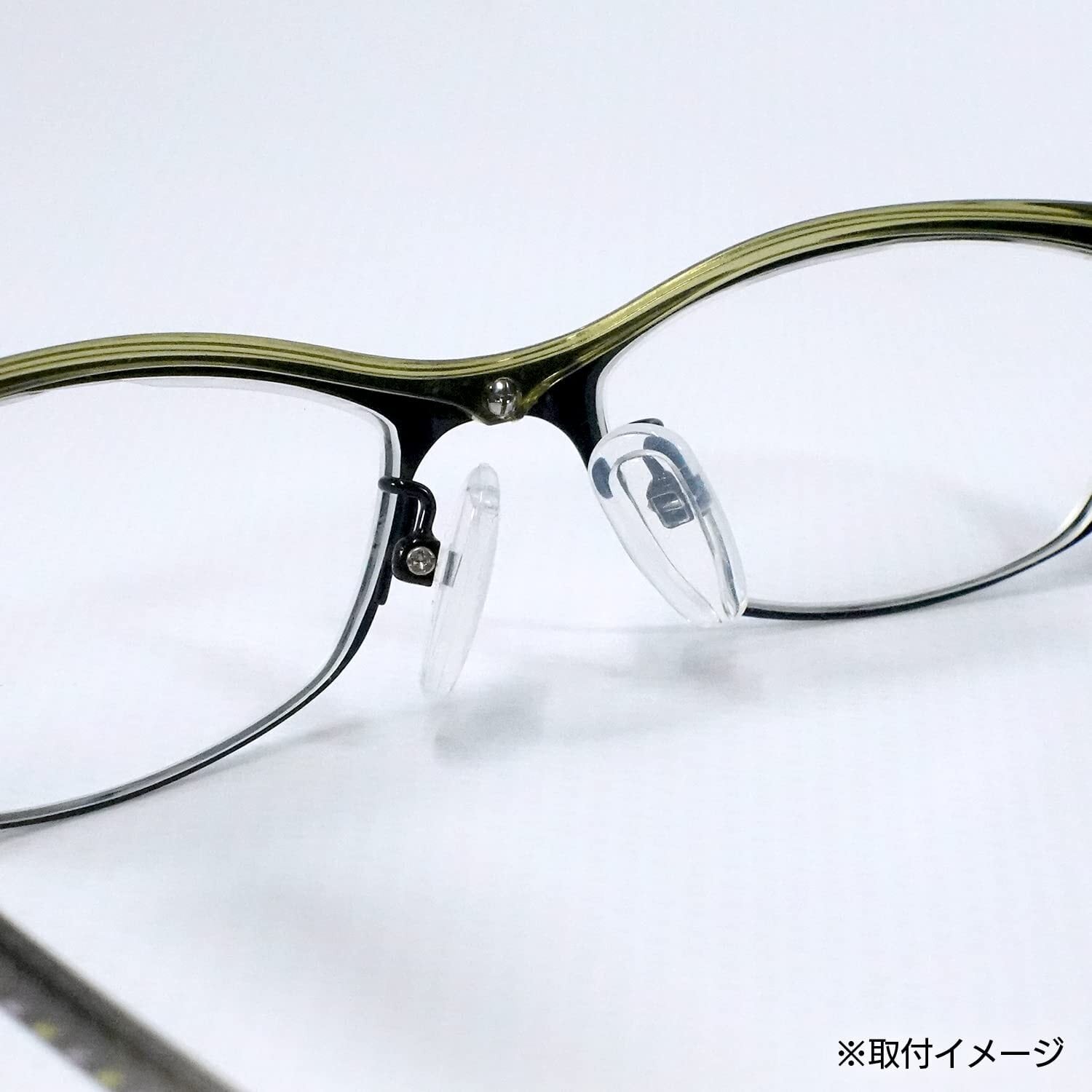 注意:※鼻パッドがついていない眼鏡、鼻パッドがネジで留められていない眼鏡には対応しておりません。※装着感には個人差があります。※アレルギー反応があった場合は速やかに使用を中断し、医師にご相談ください。