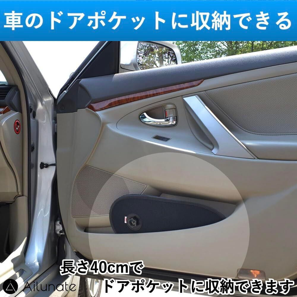 【車のドアポケットに収納できる】日除けの厚みが薄いため、使わない時はドアポケットに収納することができます。