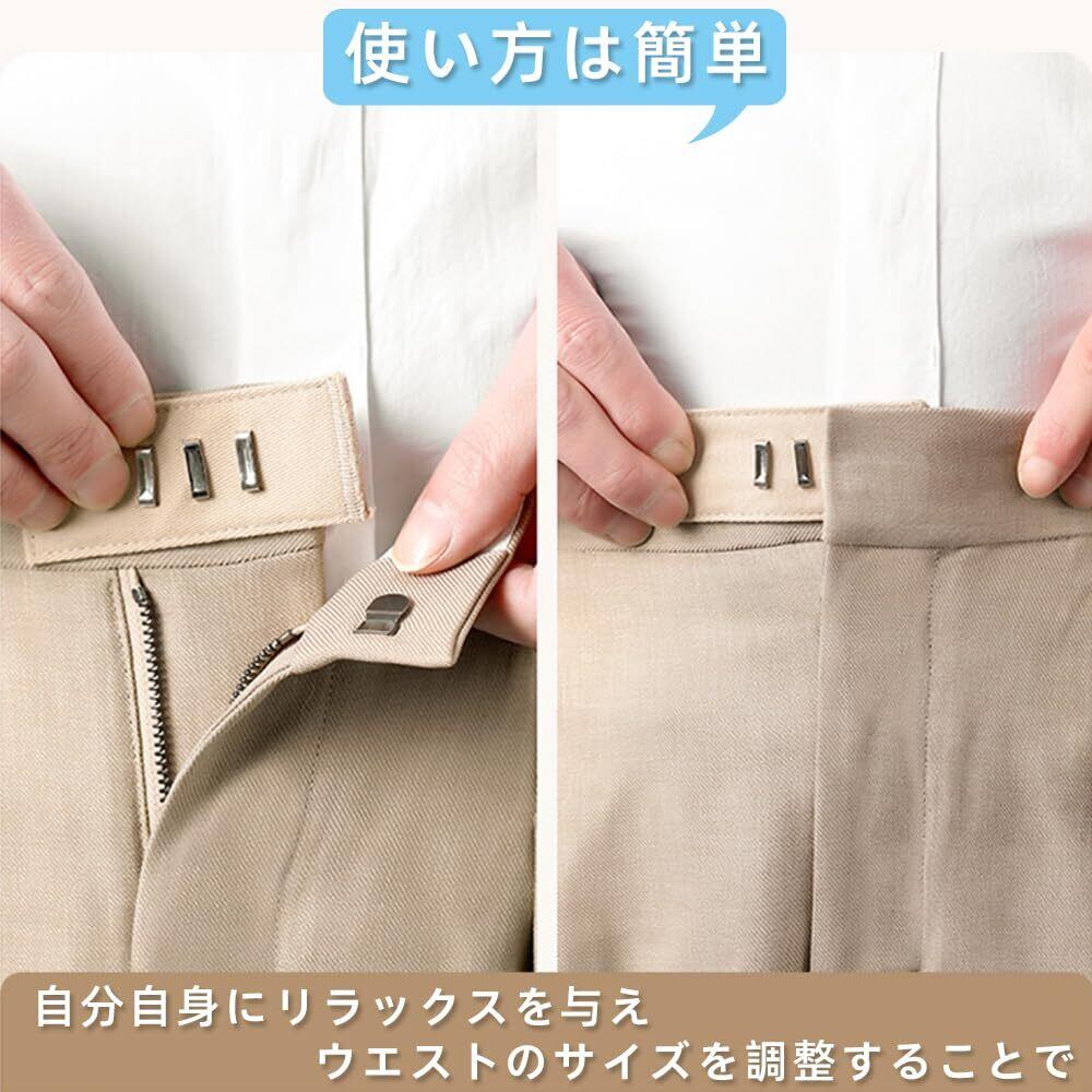 【自由な調節】このウエストアジャスターセットは、履く人の個々のニーズに合わせて調整可能です。パンツの尻上がりや緩さを調節し、束縛感なく快適な着用を実現します。自分自身にリラックスを与え、ウエストのサイズを調整することで、使用の尴尬感をなくしましょう。