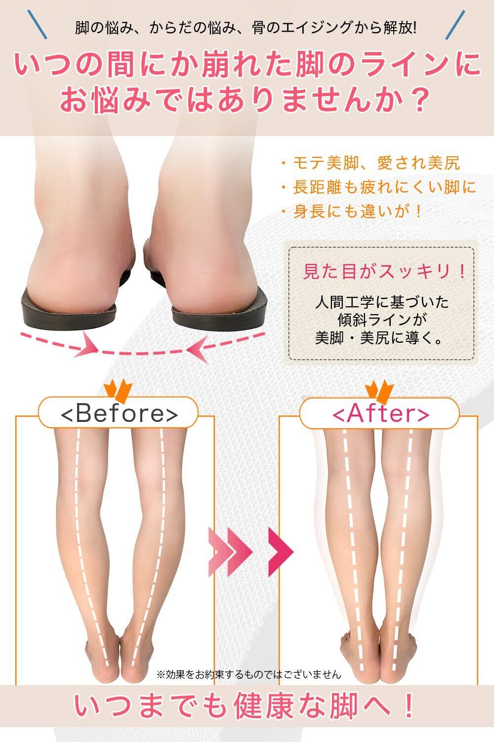 【O脚矯正に特化】O脚矯正1本に絞り日本で企画開発された唯一のO脚矯正インソールです。日本人に合った無理のない傾斜ラインを実現しました!歩き方のくせや運動中の横Gにより、いつの間にか崩れた脚のラインを美脚・美尻に導きます!