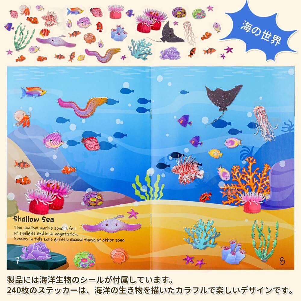 【海洋の世界のシール】知育玩具に付属する特別な贈り物です。この240枚のシールは、海洋の生き物を描いたカラフルで楽しいデザインです。子供たちの創造力を刺激し、想像力をかきたてます。海の冒険に彼らを連れ出し、自分だけの海洋の世界を作り上げる楽しさを提供します