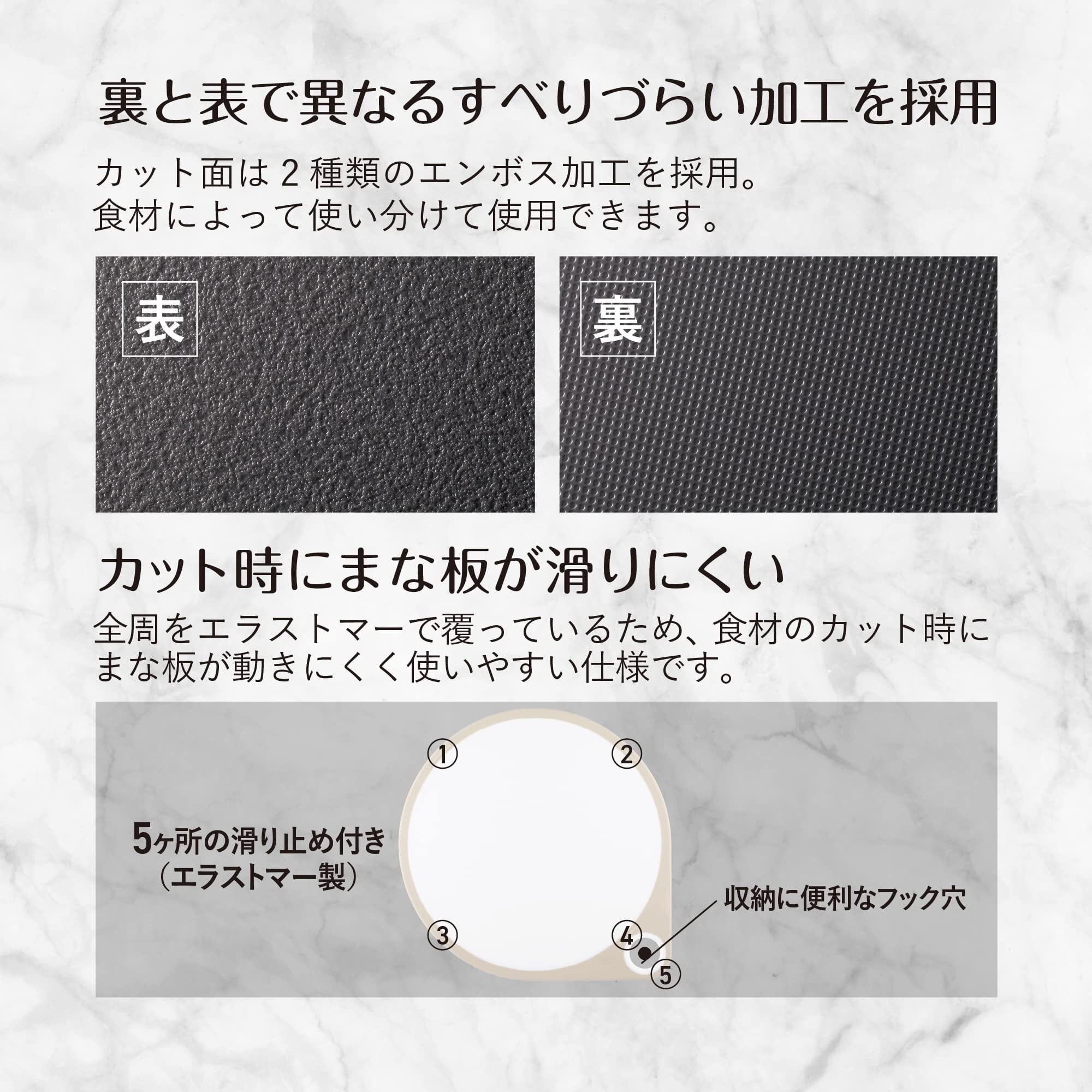 滑り止め付きなので安全に食材を切れます