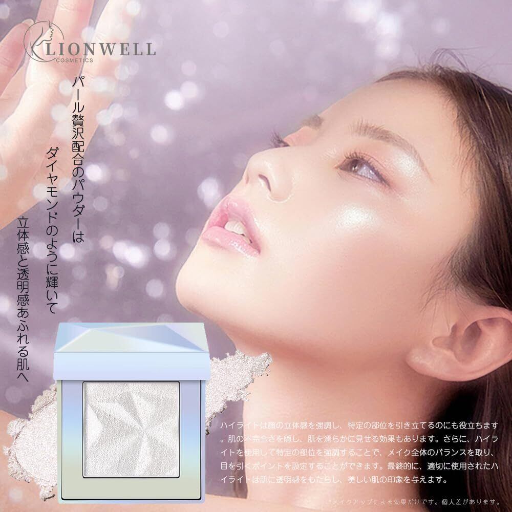 LionWell ハイライトパウダー グリッター シマー 輝き 煌き ラメ ダイヤモンドハイライター ルミナイザー 立体感 透明感 パール配合 高光沢 キラキラ ツヤ肌の仕上がり 滑らか ピタッと密着 4g 02