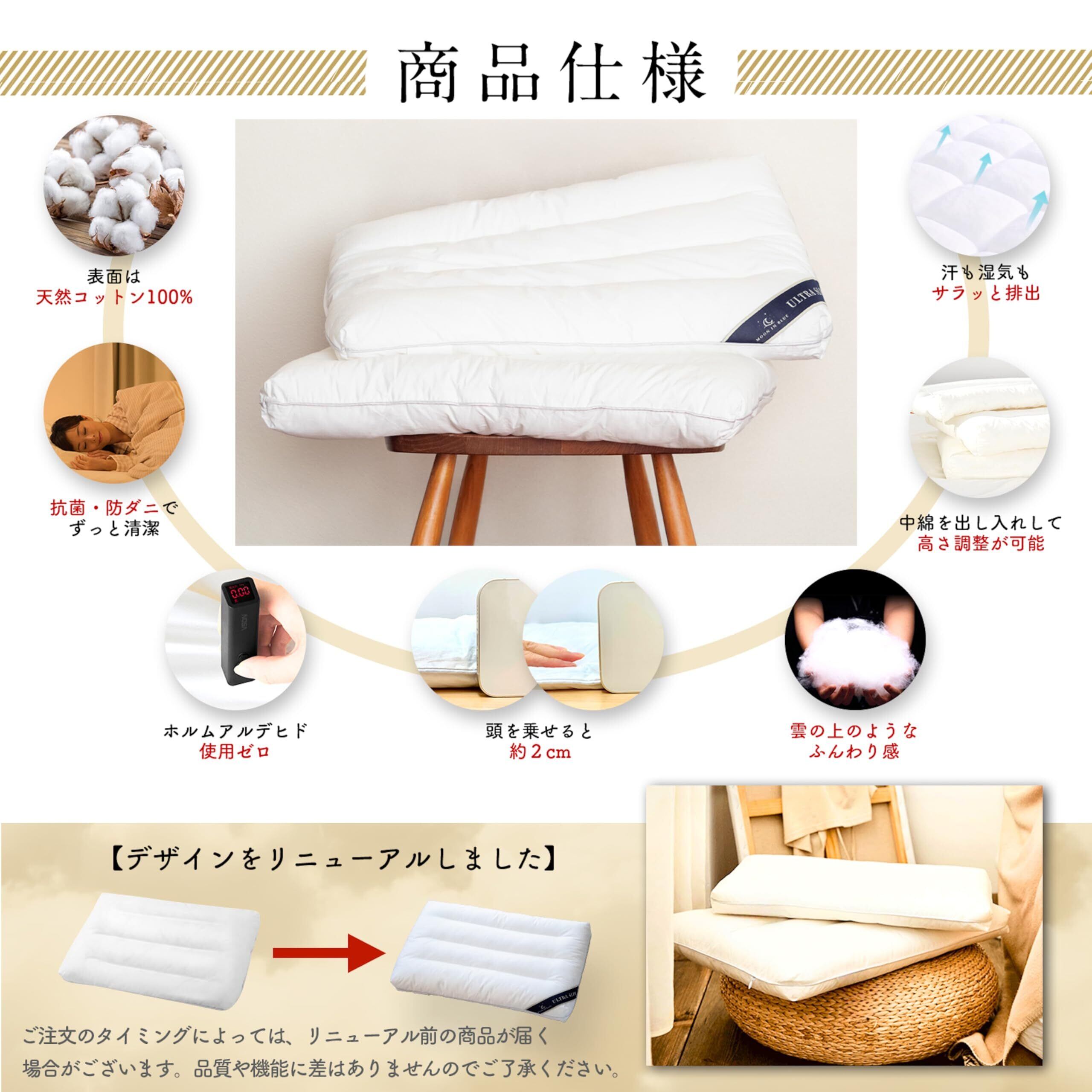 雲の上のようにふんわり柔らかいのに高弾力 / 表面は天然コットン100%しなやかさ / 抜群の通気性 / 中綿は高弾力ファインファイバーのふんわり感