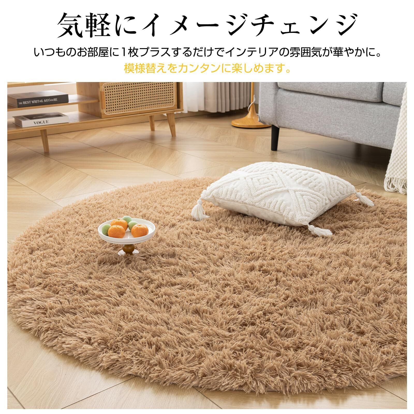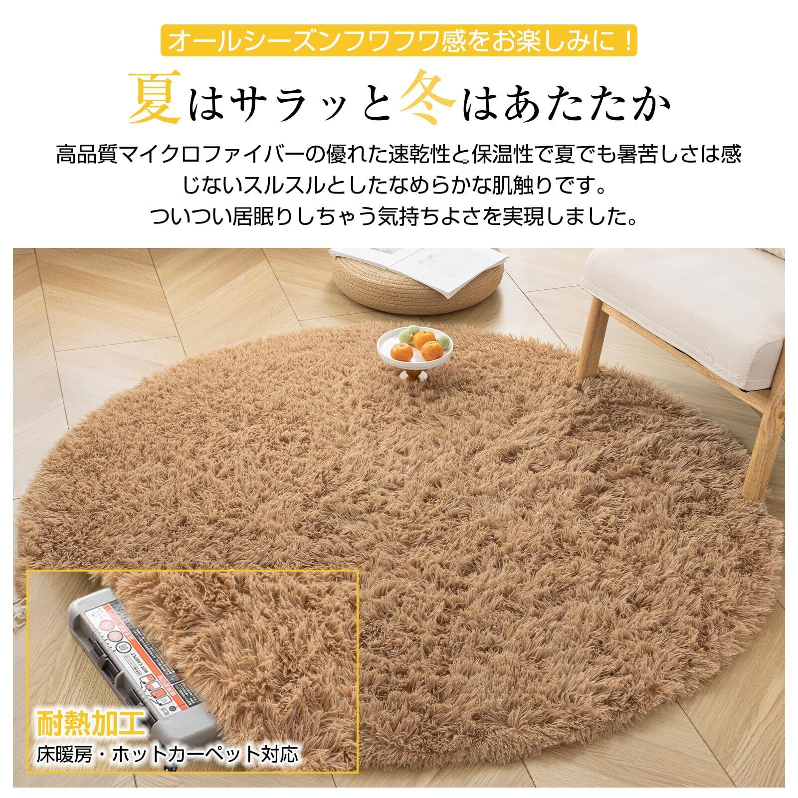 Keusnix ラグ カーペット ラグマット ふわふわ シャギーラグ 円形 絨毯 直径120cm 滑り止め付 洗える 肌触り優しい 防ダニ 抗菌 防臭 オールシーズン快適に使用 床暖房 ホットカーペット対応 ライトモカ | ニコニコshops
