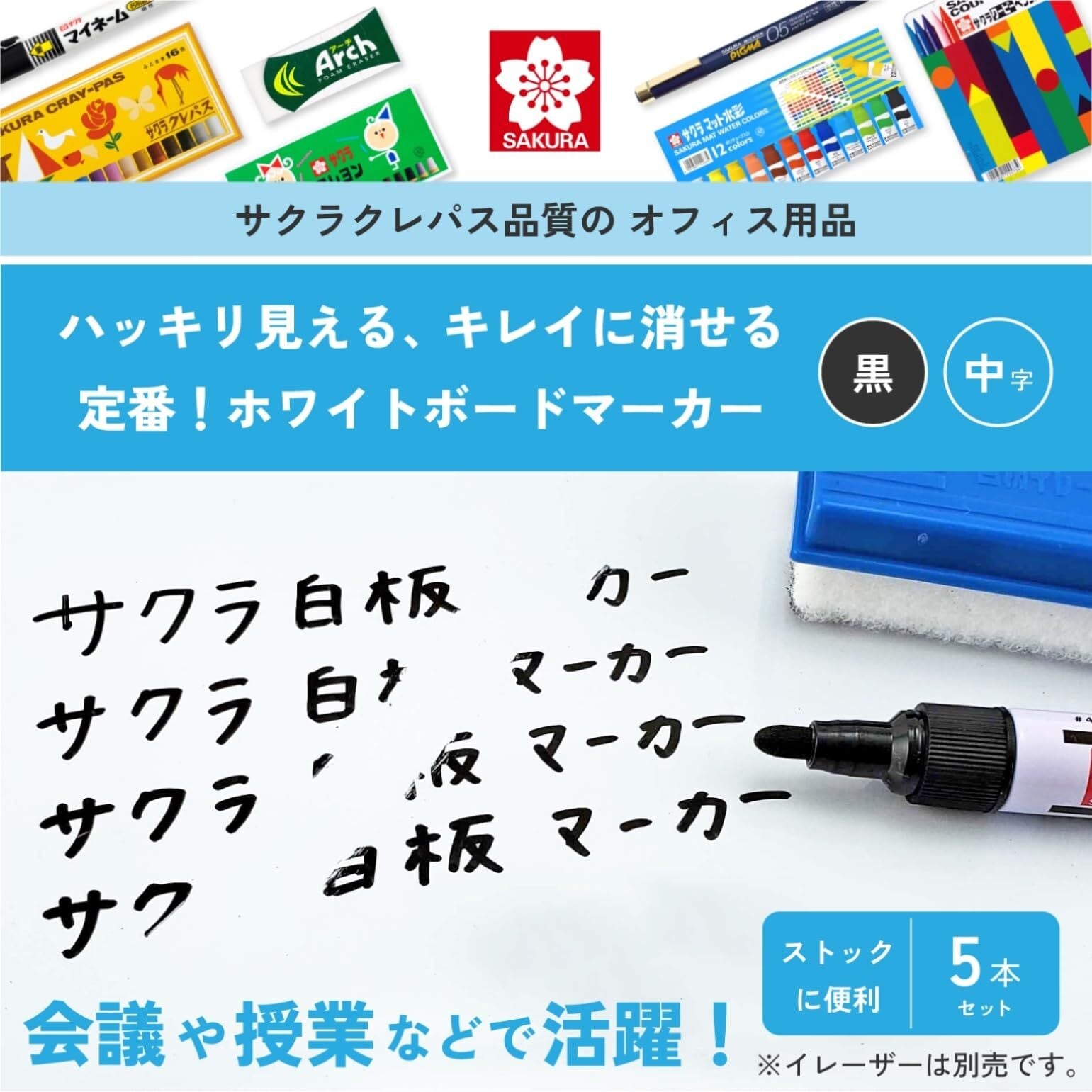 サクラクレパス ホワイトボードマーカー 中字 黒 5本 WBK5-P