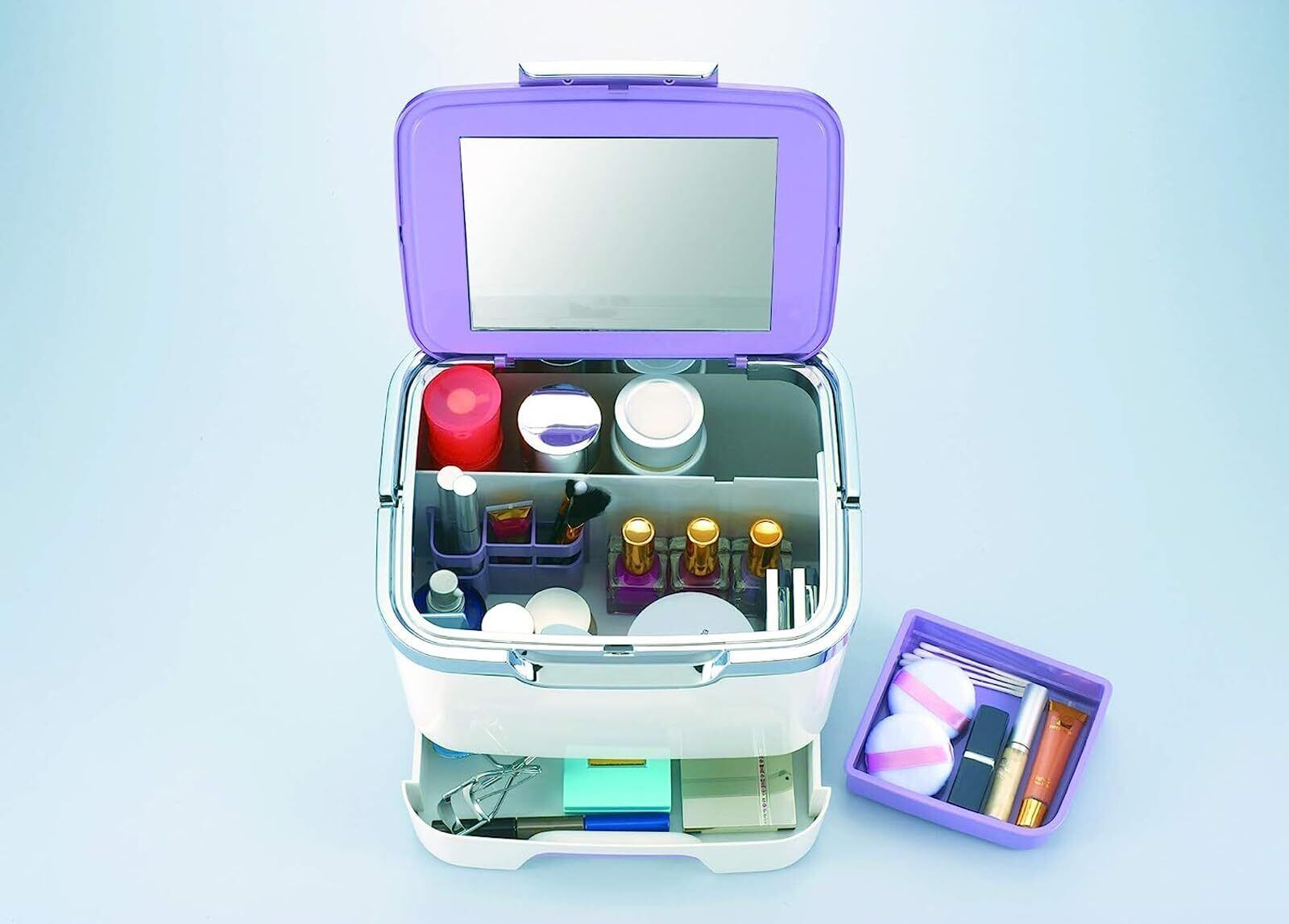 MIクリエーションズ コスメ メイク ボックス 化粧箱 化粧品 収納 ミラー付 鏡付 大容量 COB-350 パープル 日本製