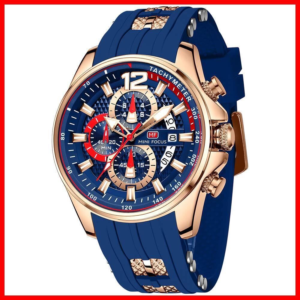 腕時計メンズ、watch for men、クオーツ スップウォッチ機能付き 日付 ステンレスバンドベルト 3ATM防水 頑丈おしゃれシンプル格付けカジュアル勉強仕事 アナログ人気ランキングブランドプレゼント (ブルーゴールド)