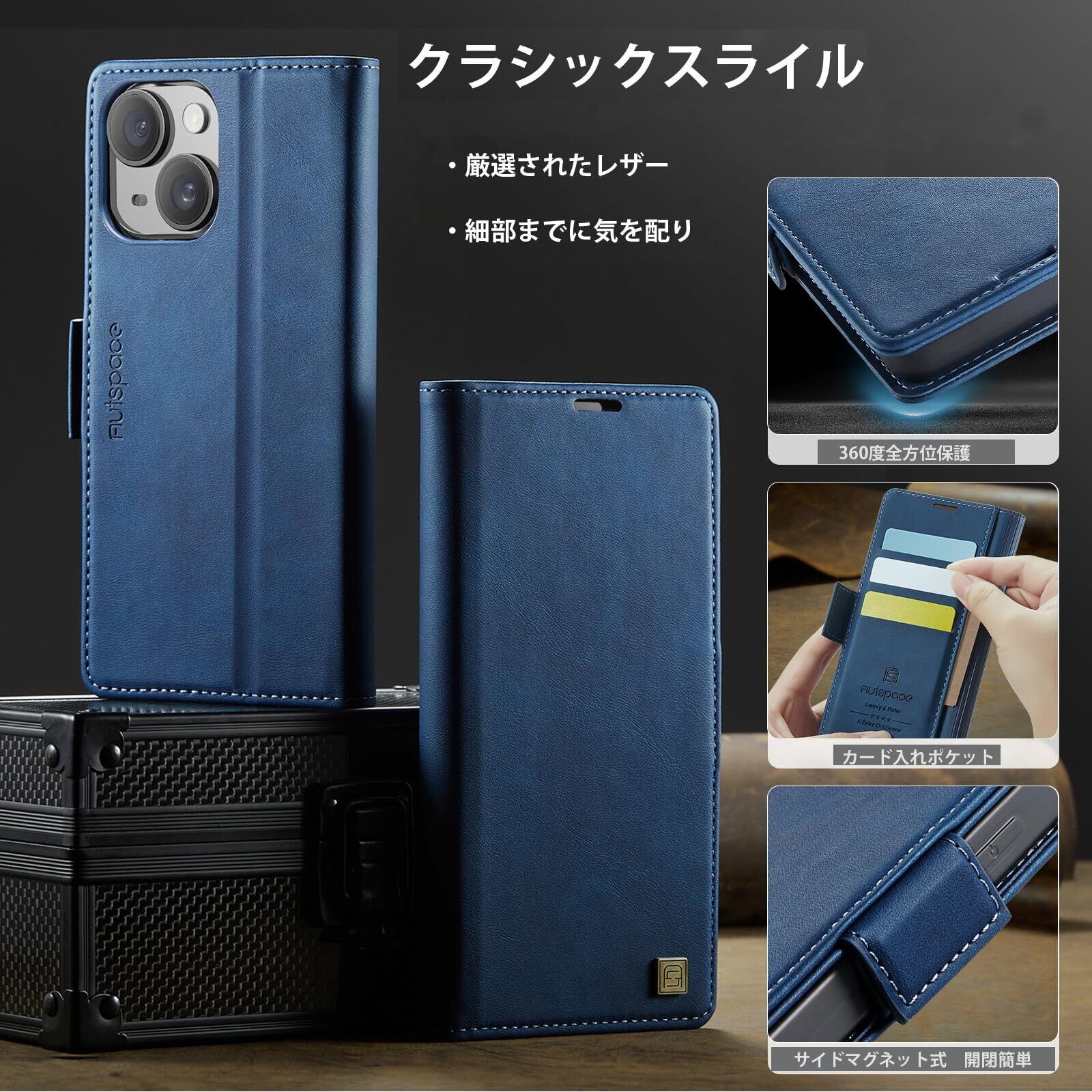 iPhone15 ケース 手帳型 iPhone 15 手帳型ケース iphone 15 ケース手帳 RFID磁気防止 スマホケース 携帯ケース アイホン15 アイフォン15 携帯カバー スマホカバー 携帯カバー 柔軟なTPUケース サイドマグネット式 カード収納 スタンド機能 耐摩擦 全面保護 手触り良い (2023年発売 iPhone 15 6.1インチ 対応) ブルー | ニコニコshops