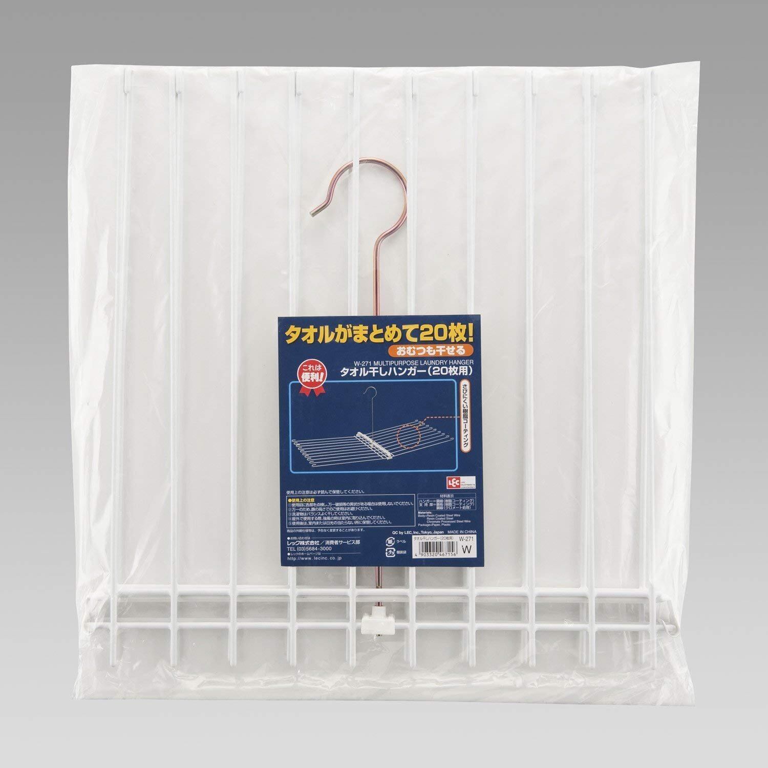レック(LEC) タオル干し ハンガー 20枚用 ( 洗濯ハンガー ) 75×39×31.5cm ホワイト W-271