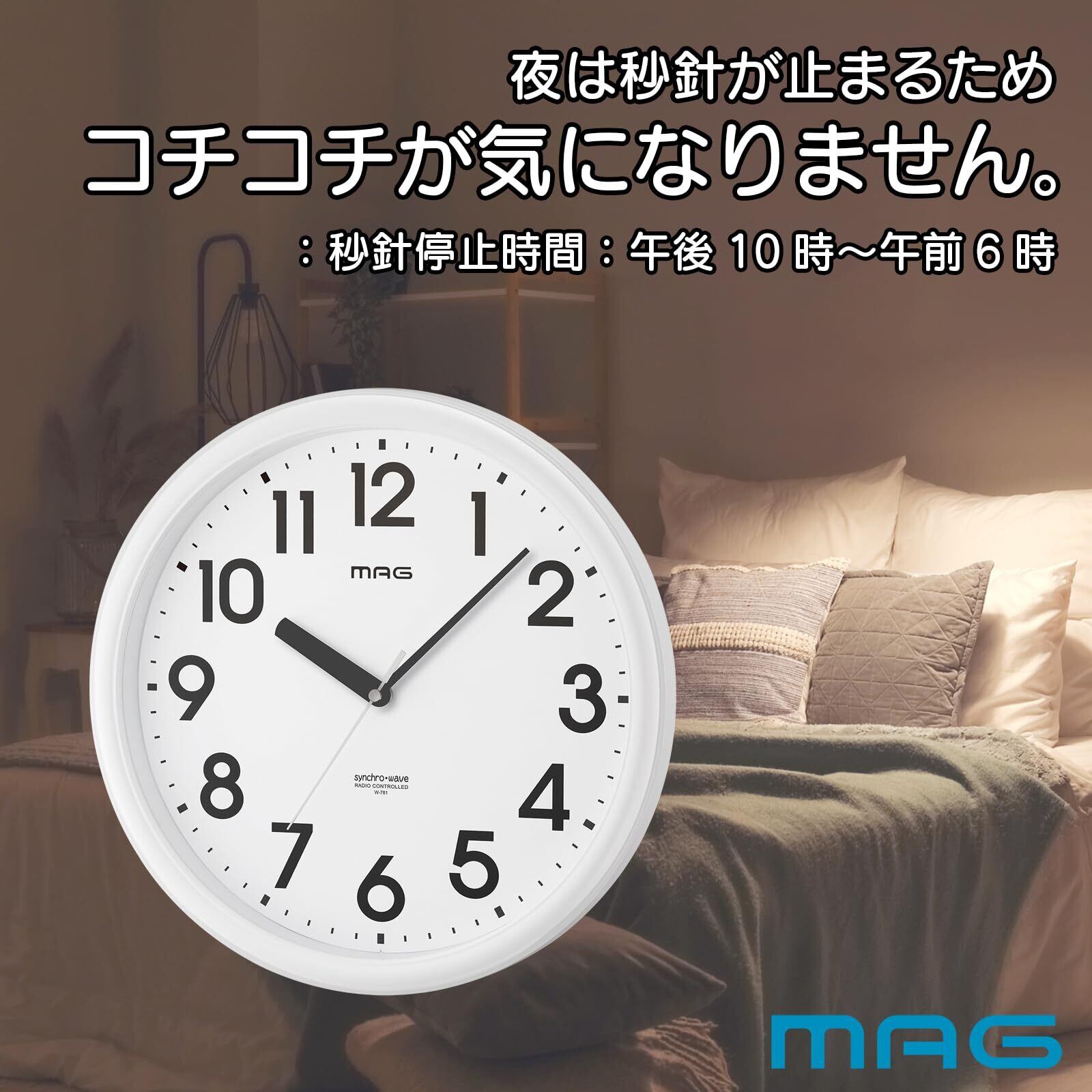 MAG(マグ) 掛け時計 壁掛け時計 電波時計 アナログ シンプル 直径31.0㎝ 夜間秒針停止 ホワイト リゲル W-781 WH-Z ノア精密