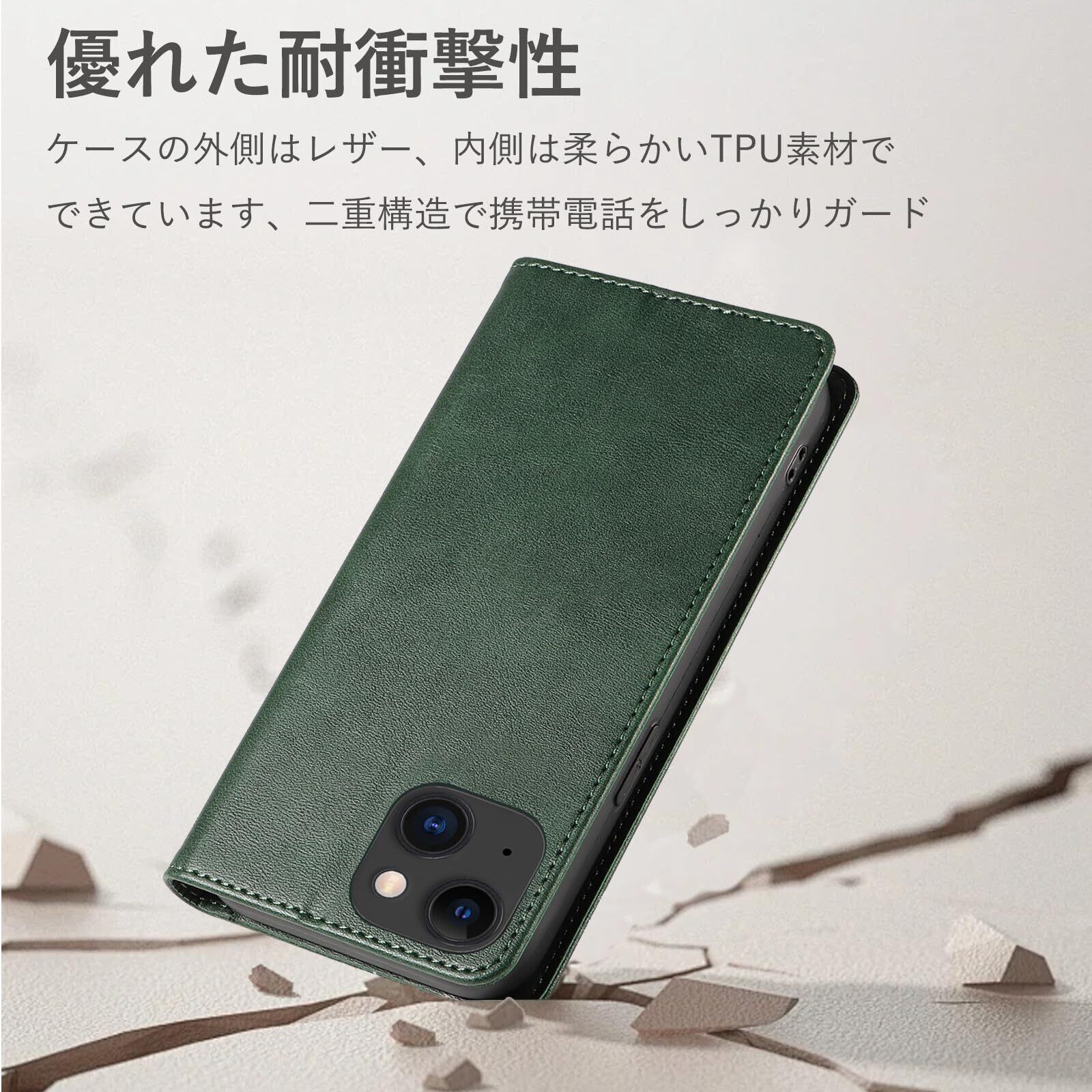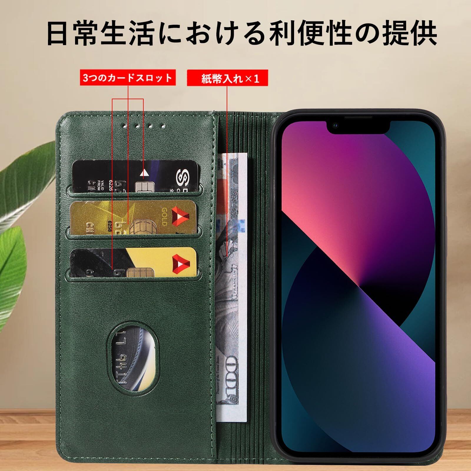 iphone 13 ケース 手帳型 携帯カバー レザー 耐衝撃 耐摩擦 軽量 着脱しやすい 全面保護 手触りが良い マグネット式 カード収納 スタンド機能 人気 上質 6.1インチ対応 EUMADOVE (ダークグリーン, iPhone 13) | ニコニコshops