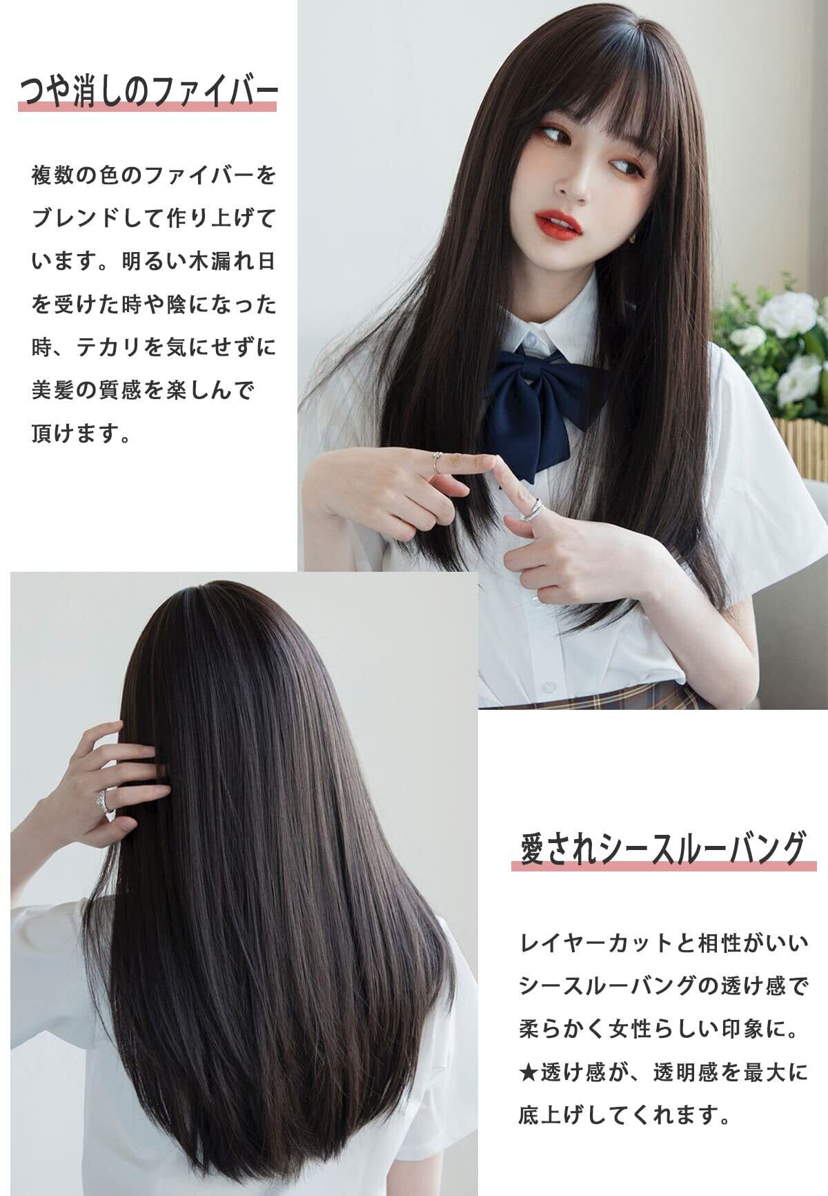 [Limakara] ウィッグ セミロング グラデーション ストレート ぱっつん フルウィッグ かつら レディース wig 自然 小顔 黒茶色