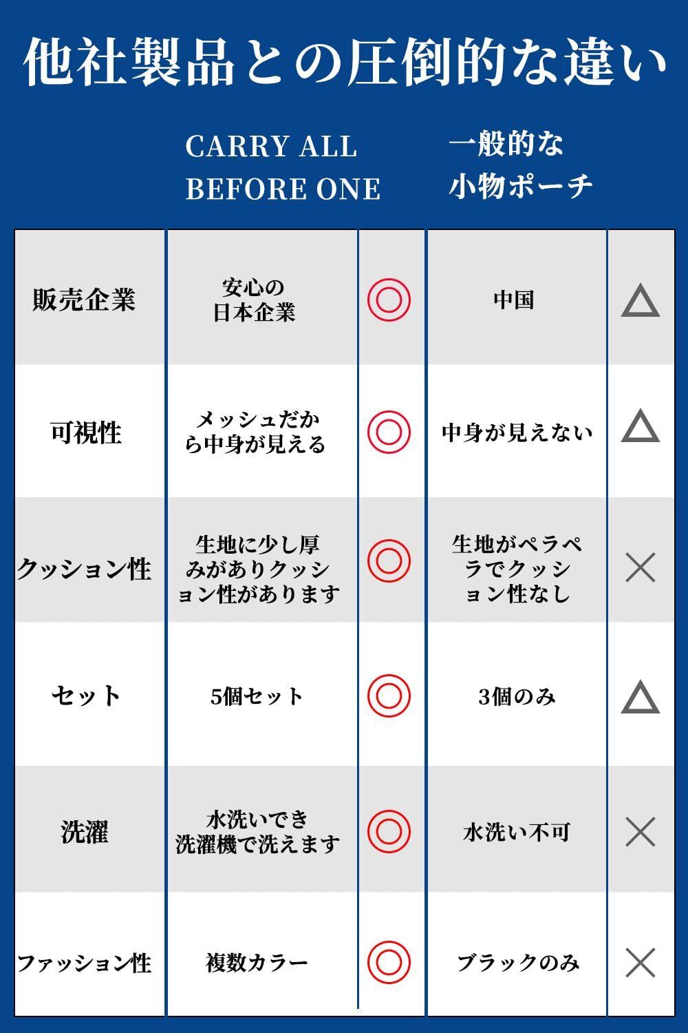 【シンプルデザイン】無地でシンプルなデザインだから年齢、男女性別問わずお使い頂けます。【使い方はアイデア次第】お手持ちのポーチやバッグの整理用として便利です。ガジェット類やコスメ、化粧品、洗面用具、サニタリーグッズ、事務用品、ビジネスアイテムなどを整理して収納できます。また、旅行や出張の際の荷物整理用としてもお使い頂けます。その他、車の中に置いておくと、何かと役に立ちます。