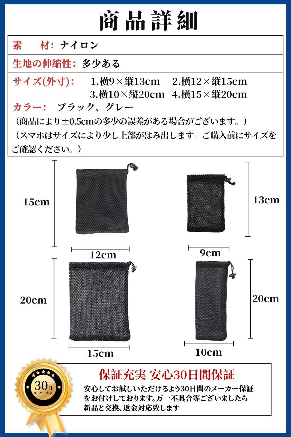 【商品詳細】素材:ナイロン 生地の伸縮性:多少ある サイズ (外寸):横9×縦13cm , 横10×縦20cm , 横12×縦15cm , 横15×縦20cm(商品により±0.5cmの多少の誤差がある場合がございます。)【充実 30日間】30日間のメーカーをお付けしております。万一不具合等ございましたら、新品と交換致します。
