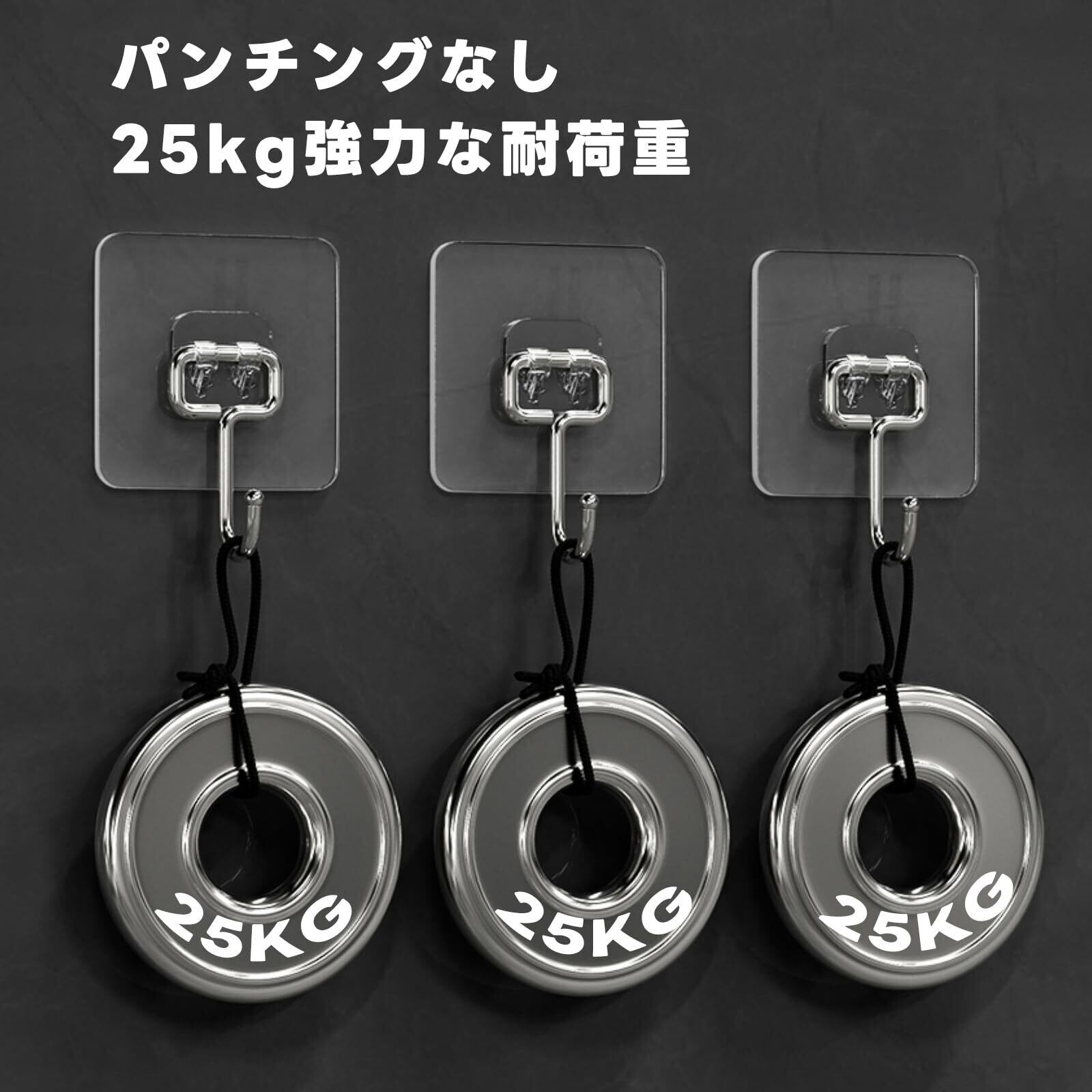 壁掛け フック 粘着 強力 壁穴あけないフック - YOKELLMUX 大型 壁掛けフック 粘着フック 耐荷重25KG 穴開けない 傷つけない 貼り付け跡なし 防水 防湿 錆びない 12枚セット | ニコニコshops