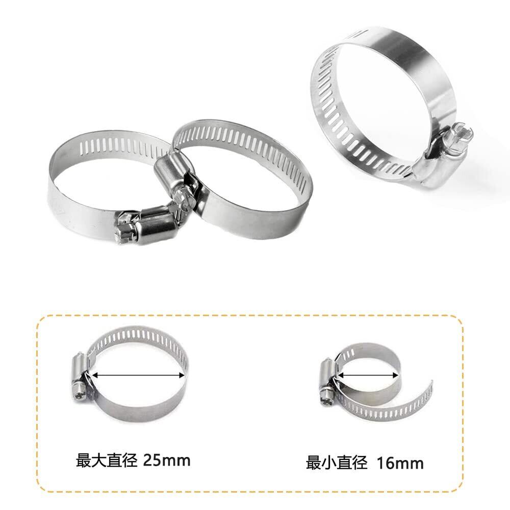 YFFSFDC ホースバンド 304ステンレス ホースクリップ Φ16-25mm対応 調整可能 強力固定 ネジタイプホース締め金 ホースバンド 汎用 (10個入り)