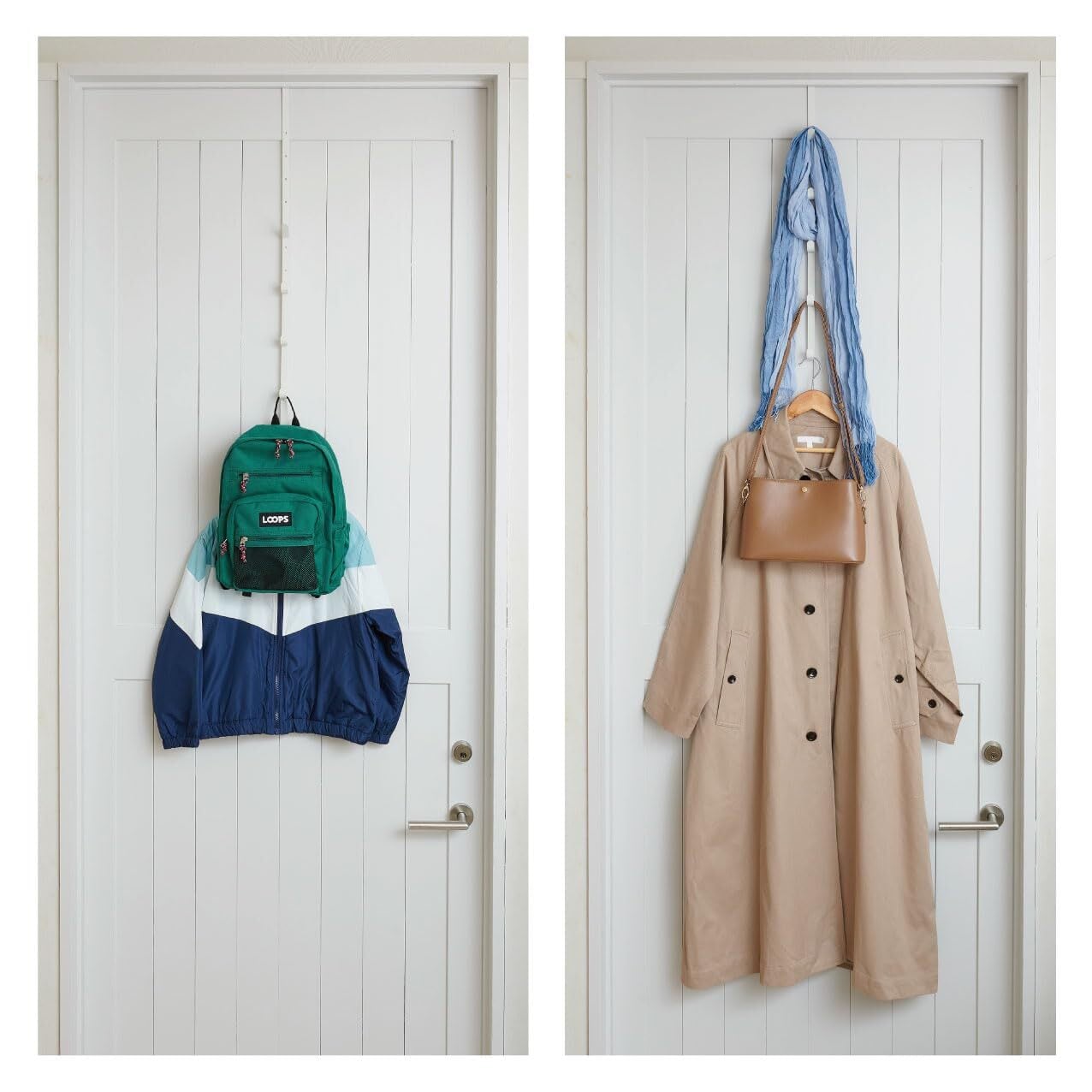 ドアや折れ戸に引っ掛けるだけ!シンプルなデザインで洋服やカバン、帽子をまとめて収納できます。