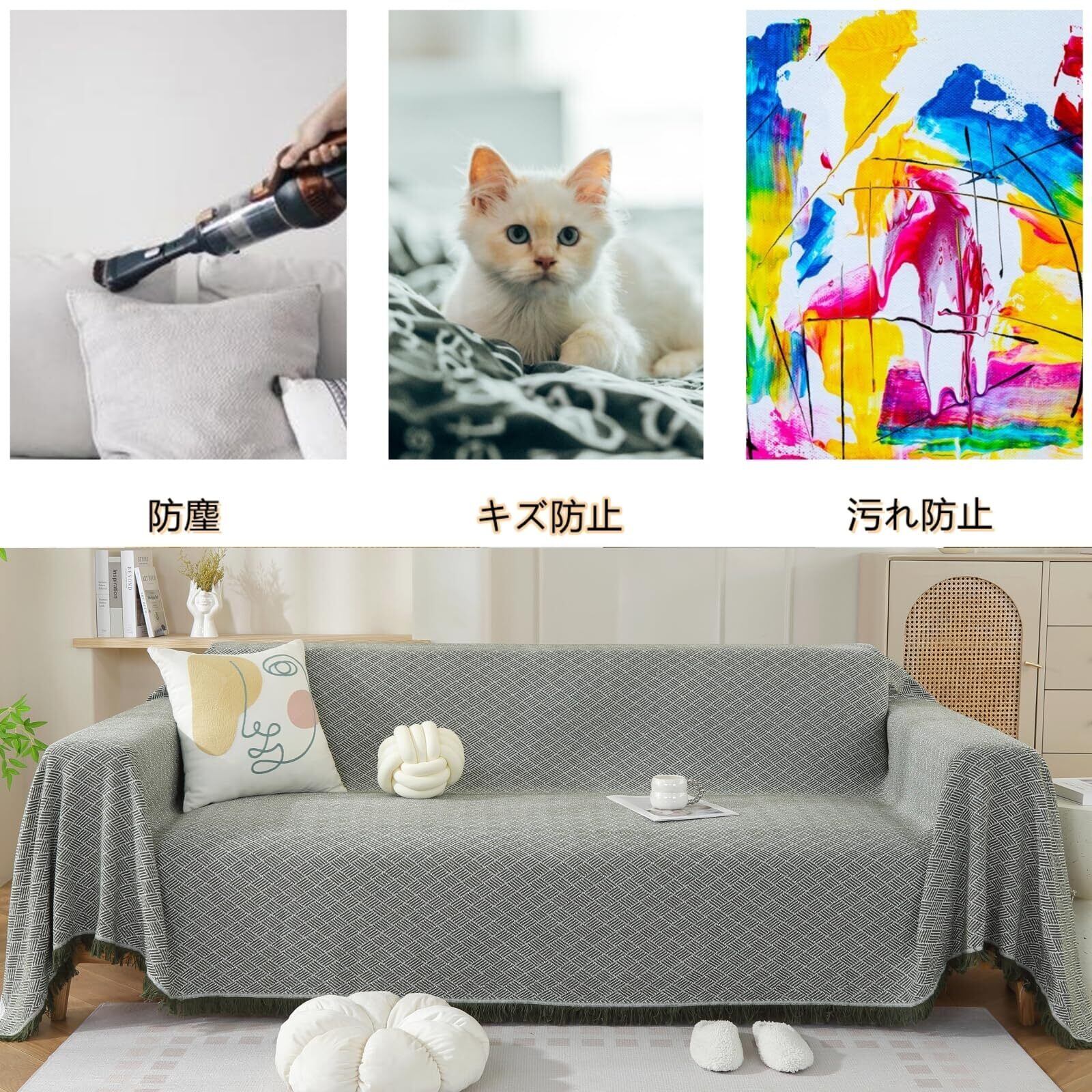 Kaoslen マルチカバー ソファカバー 北欧風 ソファーかばー 多機能 ブランケット ベッドカバー フリンジ付き ソファ、ベッドカバー、毛布、テーブルクロスなどに適しています 汚れ防止 滑り止め 傷防止 防塵 四季通用 オリーブグリーン 130*180cm(1-2人掛け) | ニコニコshops