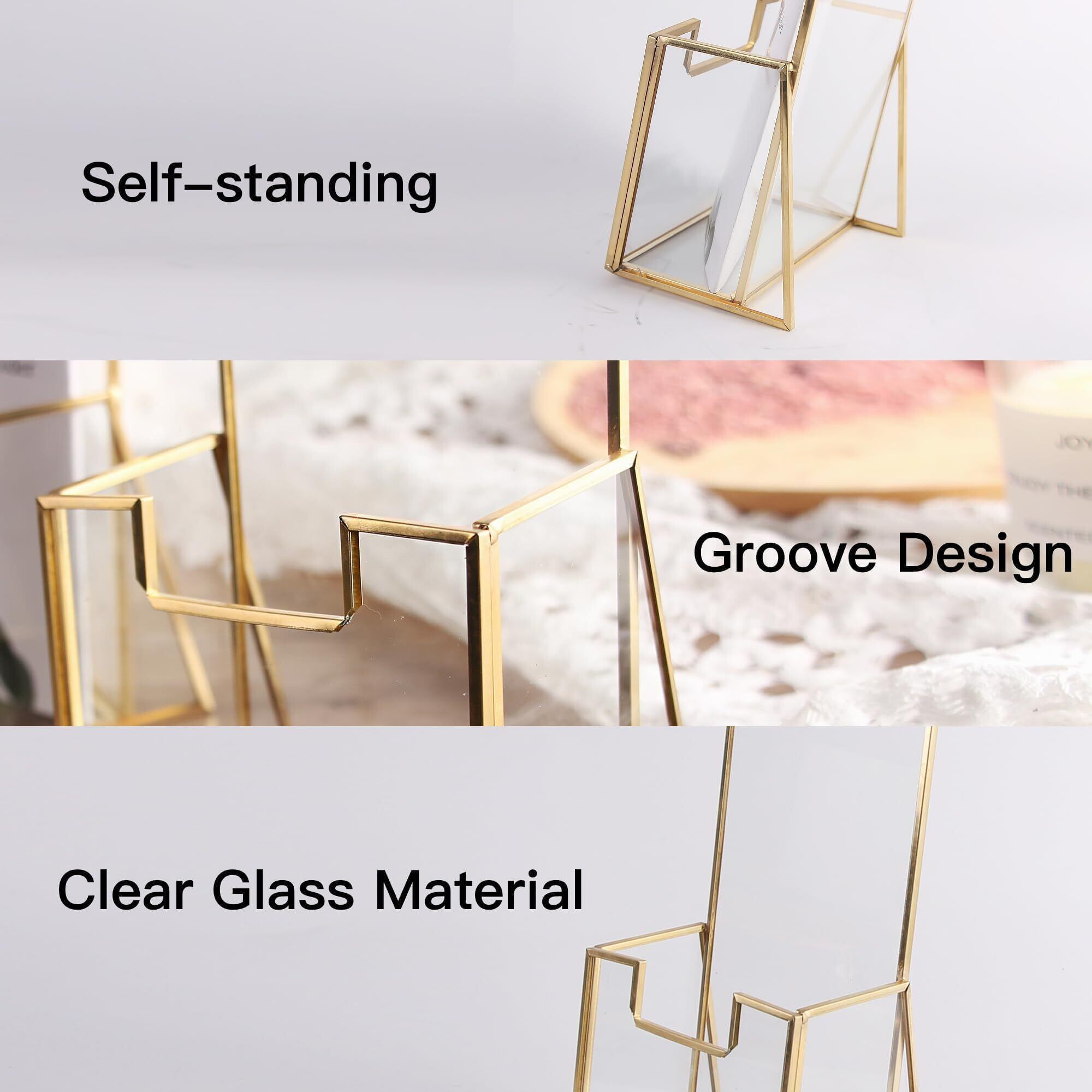 Feyarl カタログケース カタログ・POP広告スタンド 透明 縦型 A6 ガラス 真鍮 ハガキホルダー 卓上 パンフレット立て おしゃれ カタログラック ゴールド