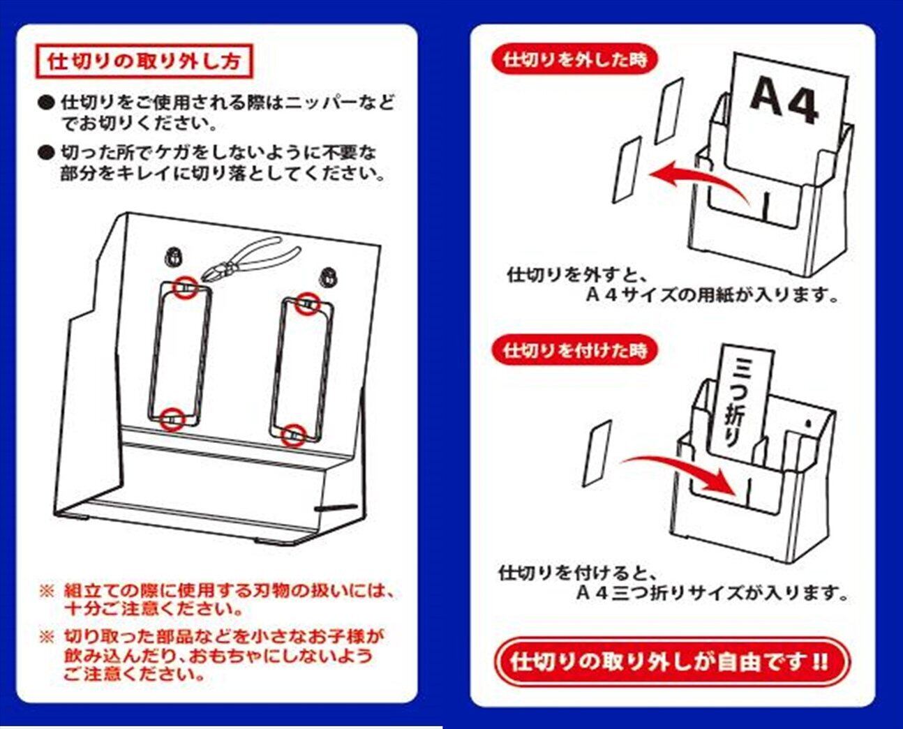 仕切り板を使えば、A4サイズの三つ折りパンフレットやはがきサイズのポストカード・DMなども置ける