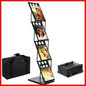 RMNKTHC カタログラック、折りたたみ式 マガジンラック 4層 オックスフォード収納バッグ付き A4サイズ対応 アイアン製ディスプレイラック チラシ・パンフレット・カタログ整理 設置不要 高耐久鉄製 中空通気設計 回転式安全バックル リビング/オフィス/展示会用 省スペース 垂直床置き 雑誌棚(ブラック)