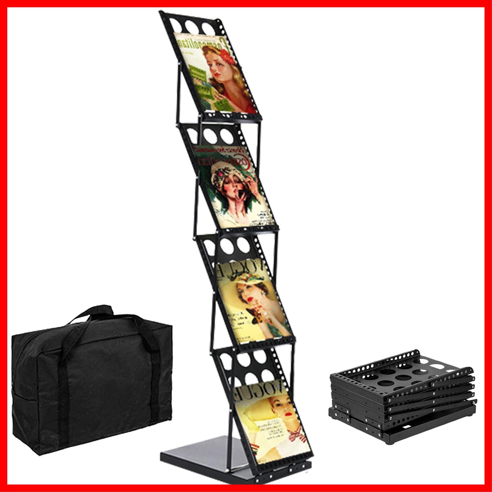 RMNKTHC カタログラック、折りたたみ式 マガジンラック 4層 オックスフォード収納バッグ付き A4サイズ対応 アイアン製ディスプレイラック チラシ・パンフレット・カタログ整理 設置不要 高耐久鉄製 中空通気設計 回転式安全バックル リビング/オフィス/展示会用 省スペース 垂直床置き 雑誌棚(ブラック) | ニコニコshops