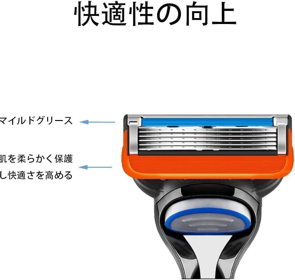 【刃の構造】交換用ヘッドは、5枚のステンレス刃と潤滑ストリップで構成されています。 ジレットの刃は非常に鋭利で、シェービングジェルがなくても良い結果をもたらします。