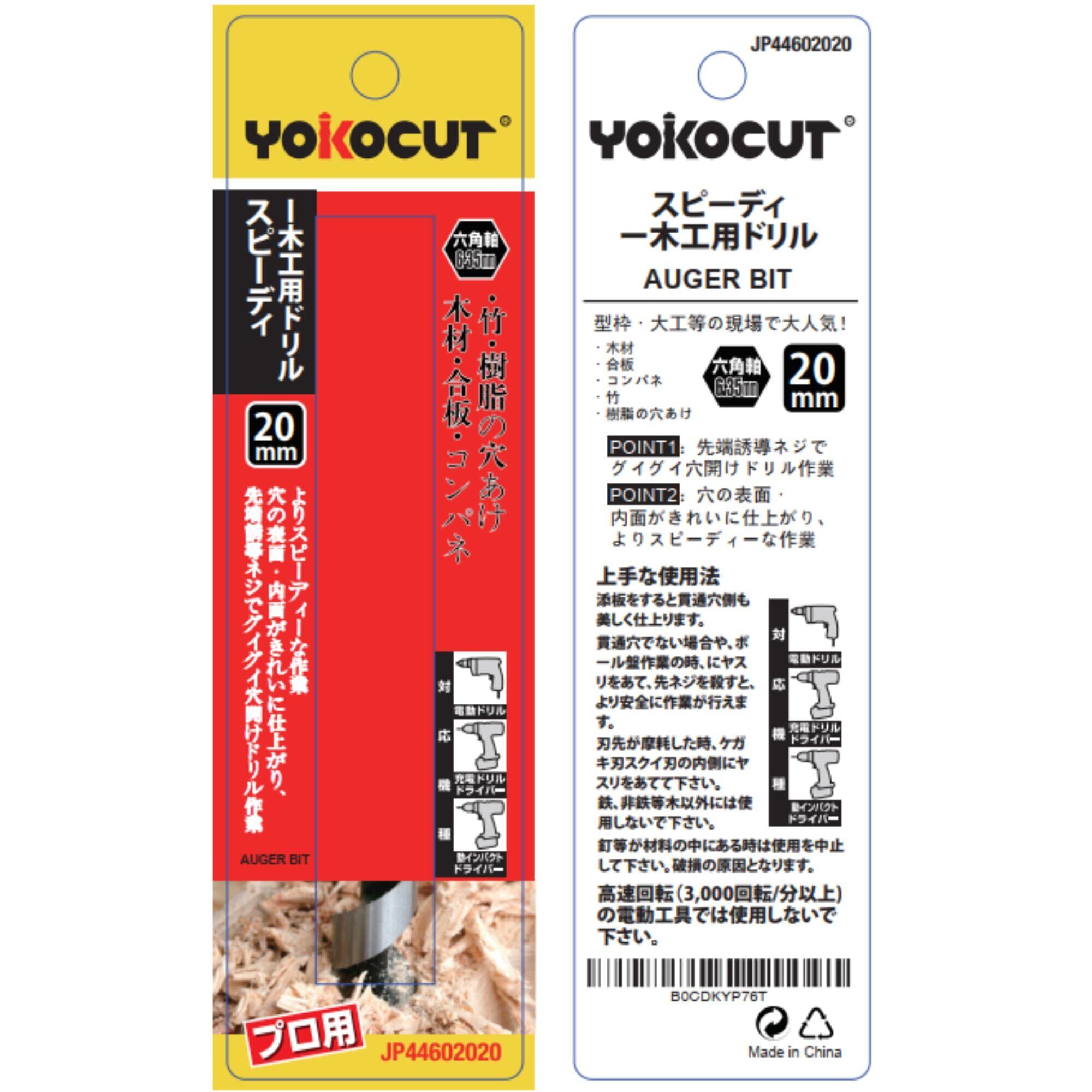 ・YOKOCUT 木工用ドリルビット 20mm 六角軸 木工用ショートビット、充電式インパクトドライバー、ドリルドライバー、電気ドリで使用可能。先端誘導ドリルポイントが穴ずれを防ぎ、美しい真円に仕上がる木工ドリル。