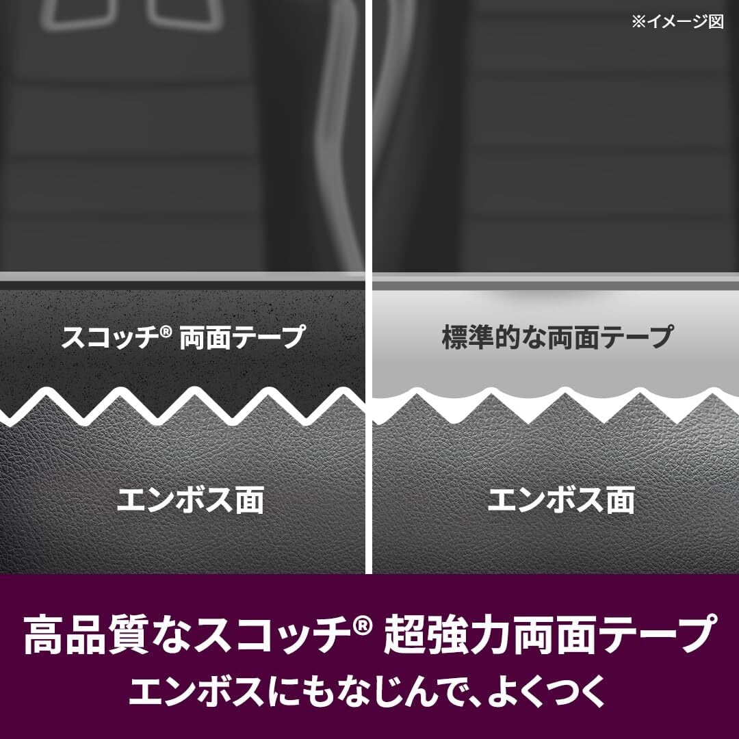 【時間が経っても、変わらない接着力】 素材の変形や縮みにもピタッとフィットする超強力な自動車内装用両面テープ。長期間の使用にも耐えられます。