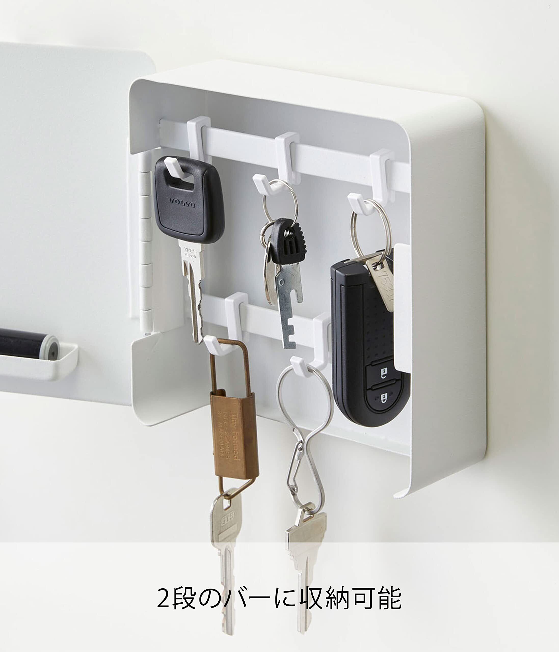 山崎実業(Yamazaki) マグネット キーフック 2段 ホワイト 約W15.8XD5.5XH15.8cm タワー 玄関 エントランス 鍵 印鑑 収納 鍵いれ 4799