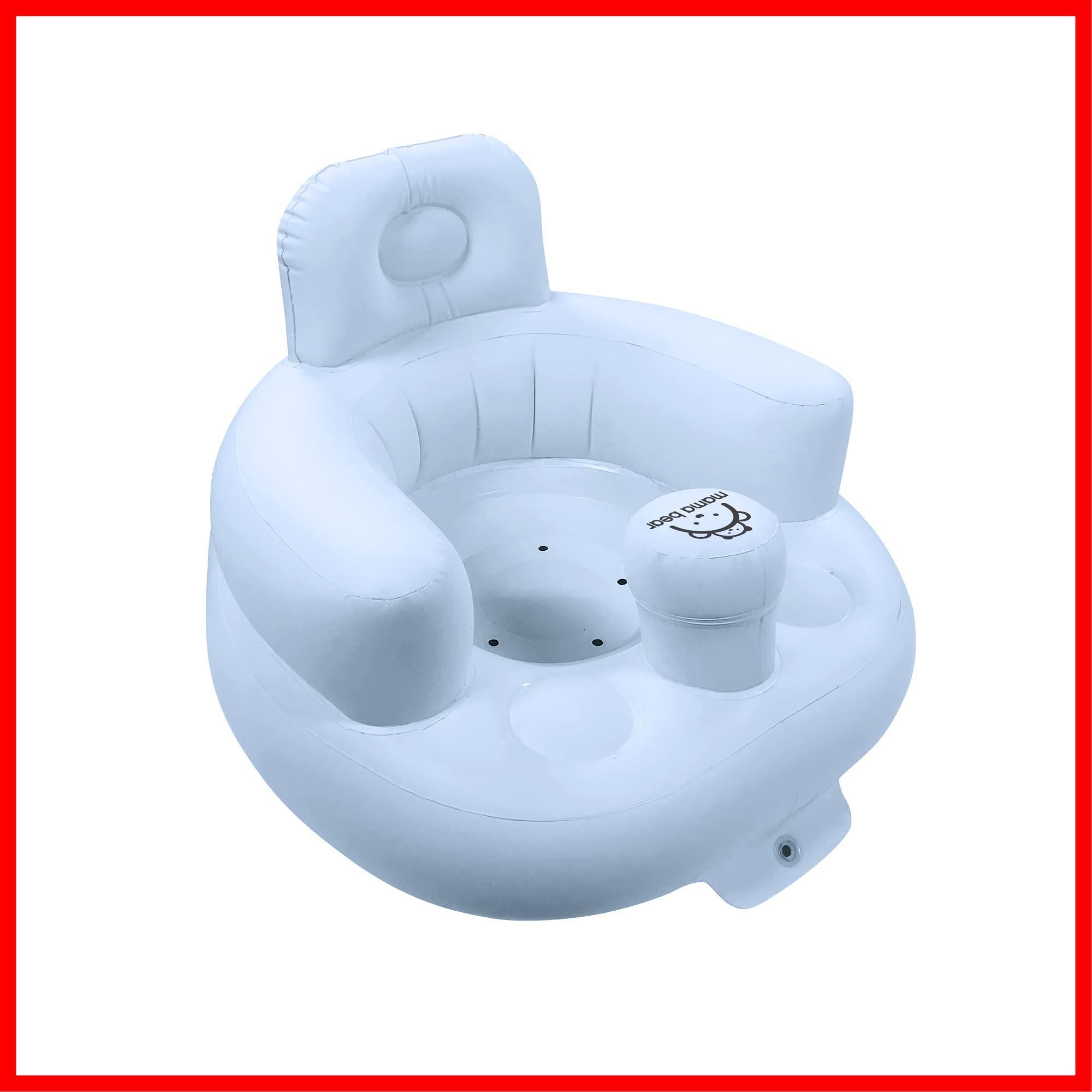 空気でふくらむタイプのベビーバスチェア 大型バルブで短時間で空気が入り、抜くときも一気に抜ける! 空気を抜くとコンパクトになるので持ち運びや収納に便利