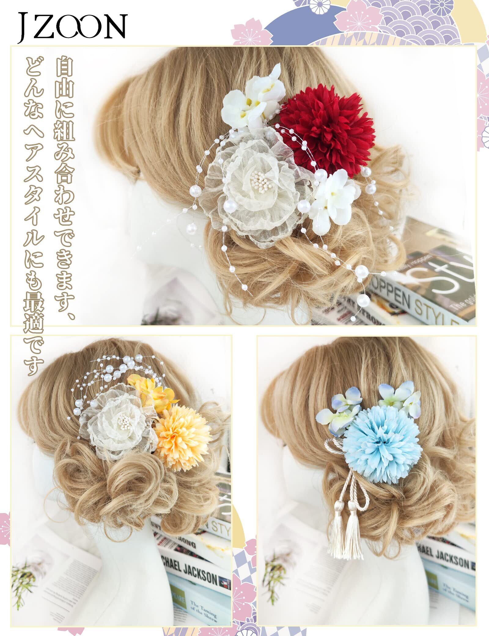 【JZOON 髪飾り】髪飾り 6点セット ヘアアクセサリー ヘアメイク ドライフラワー Uピン ヘアピン 可愛い 日常 おしゃれ 簡潔 和装 着物 袴 浴衣 シフォンリボンの花びら 紫陽花