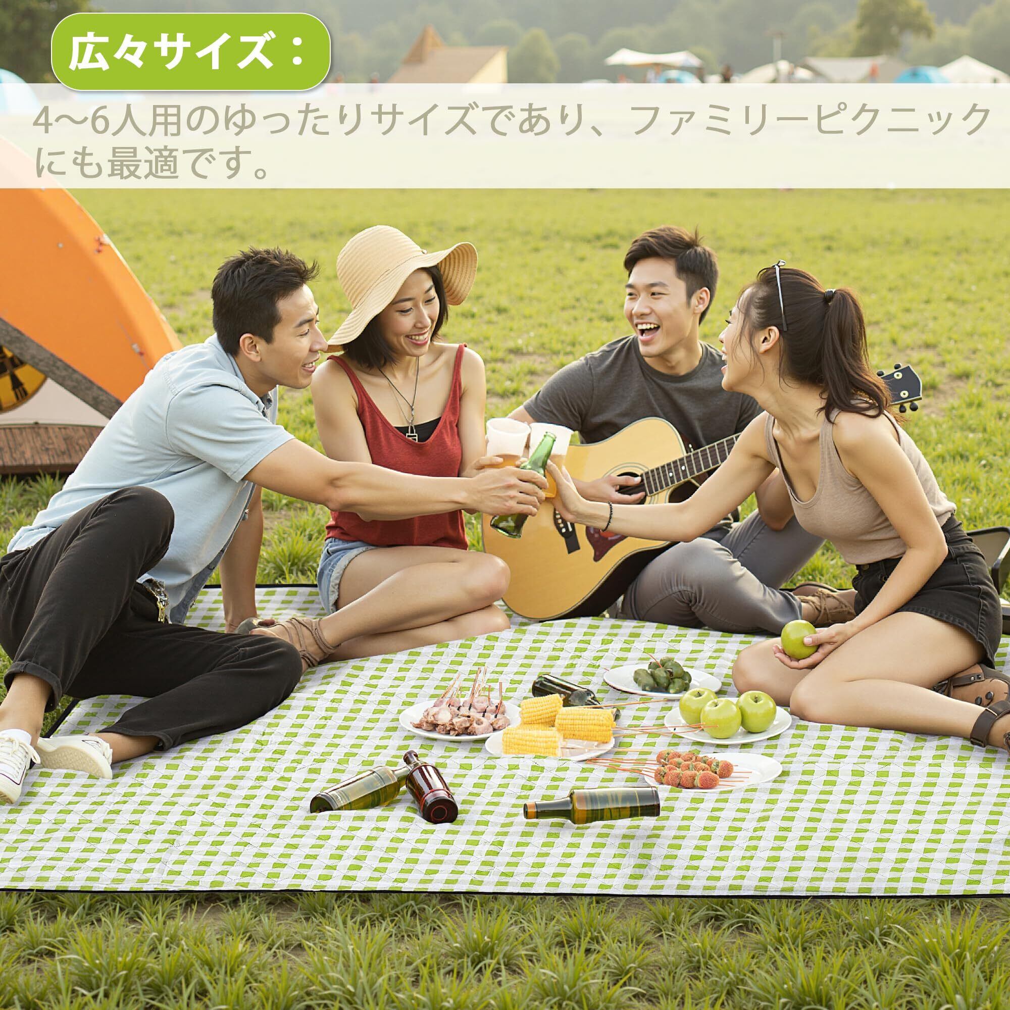 【広いサイズで快適な空間】本社のキャンプマットはサイズの大判デザインで、家族や友人と一緒にゆったりくつろげる広々としたスペースを提供します。ビーチマットとして、シンプルかつおしゃれなデザインで、さまざまなシーンにマッチします。アウトドアだけでなく、室内や庭での使用にも適しています。