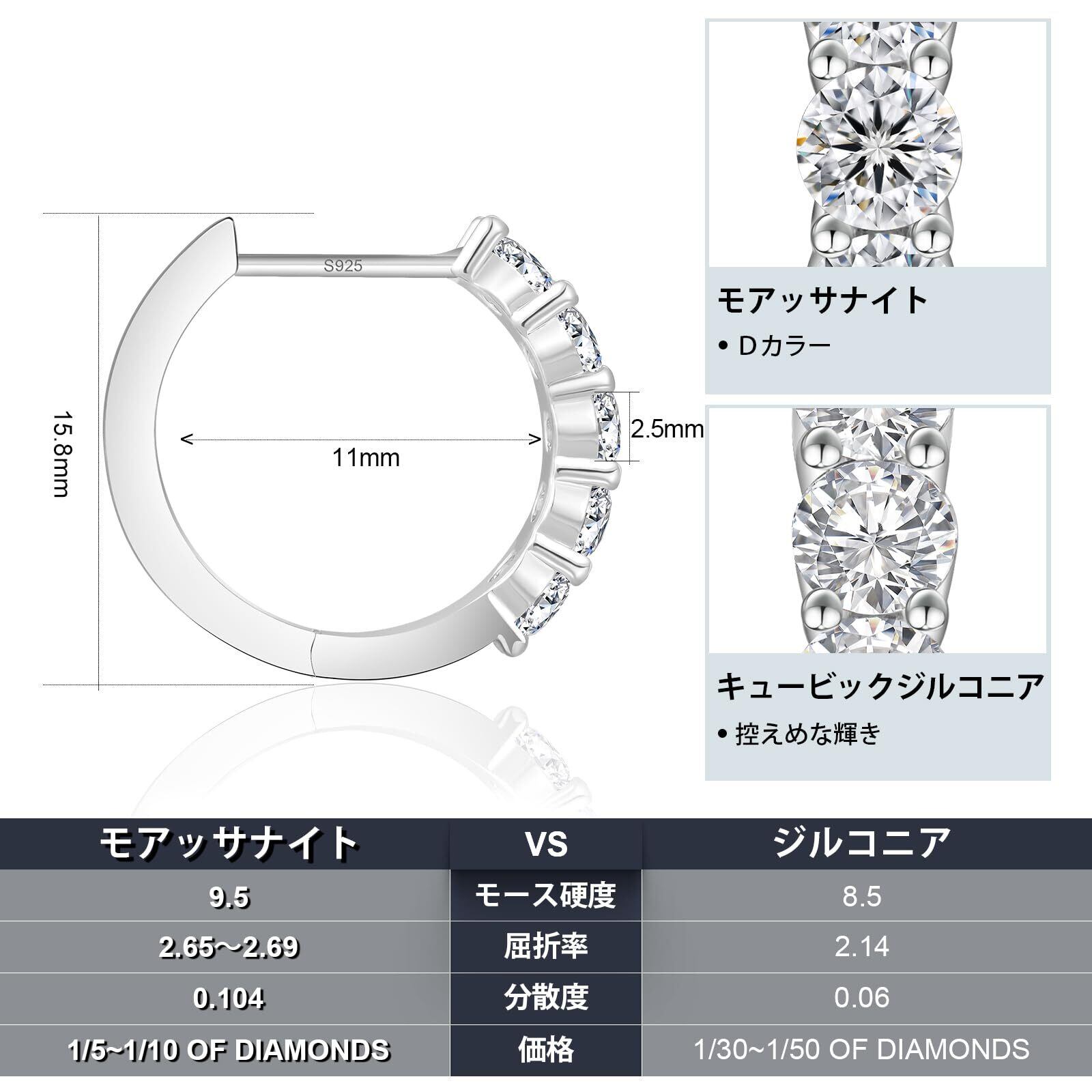 KRKC&CO モアッサナイト フープピアス レディースピアス シルバー925 内径11/13/14/15mm 金属アレルギー対応 両耳 計0.6/1.0/1.4/2.0ct 人工ダイヤモンド ハーフエタニティ リングぴあす シンプル キラキラ | ニコニコshops
