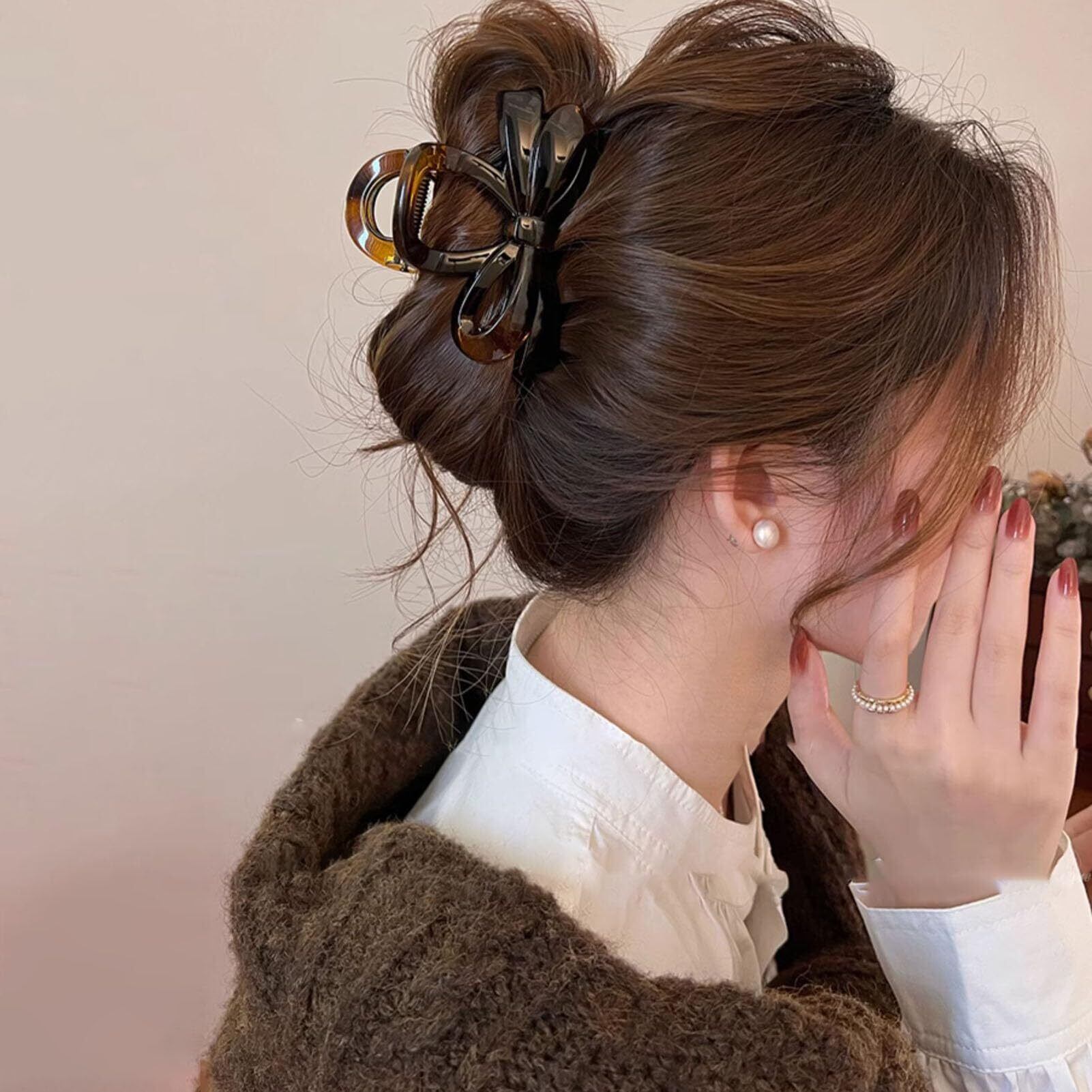 【おしゃれなデザイン】べっ甲風の落ち着いた配色が上品なバンスクリップ。大人のヘアスタイルに馴染むリボンなデザインがこなれた印象へ導いてくれます。韓国、SNSでも大流行のシンプルでオシャレなヘアクリップです。シンプルなデザイン、ファッショナブルなスタイル、髪に輝きを与えます。あらゆる年齢の女性と女の子に最適です。