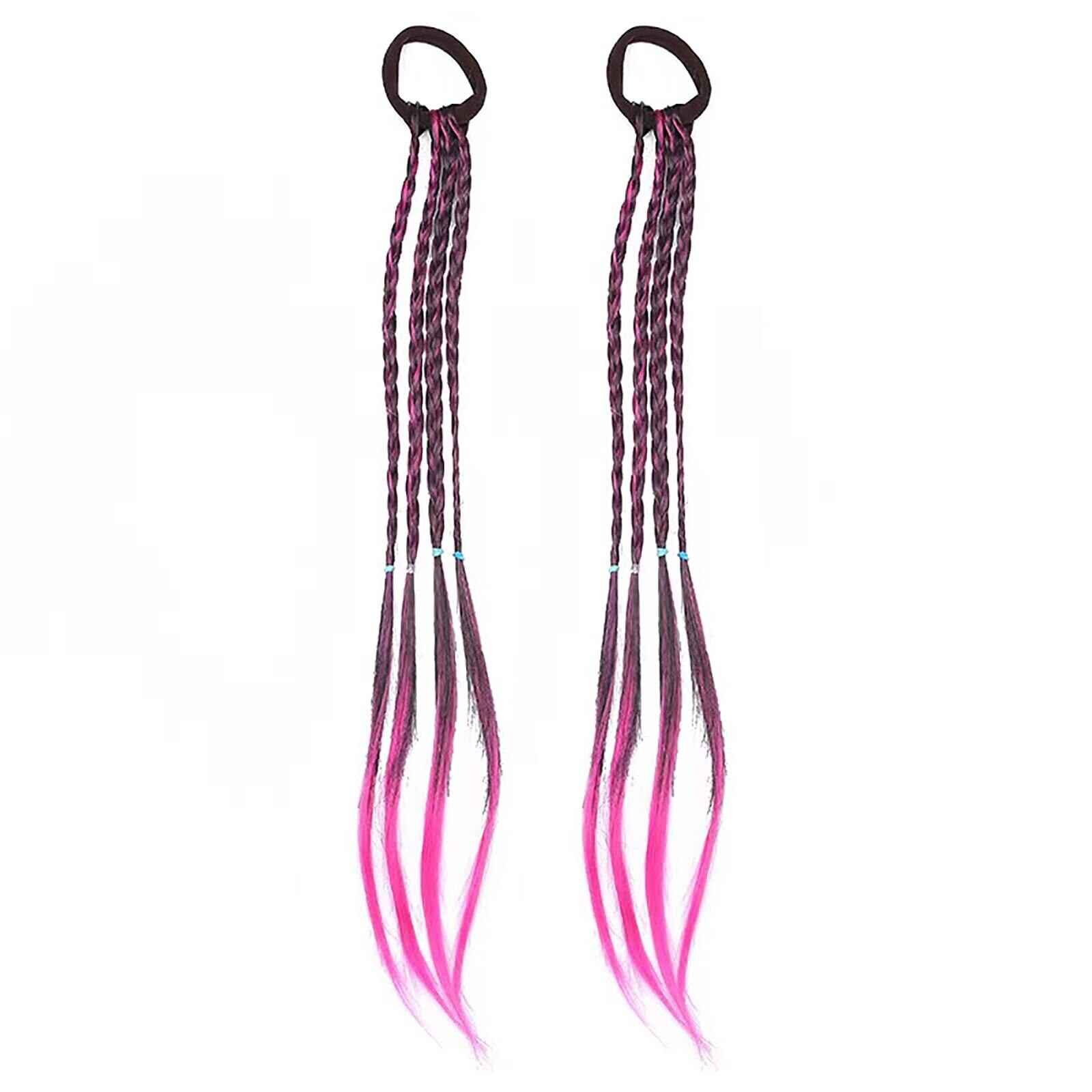 SATPULOT ウィッグ エクステ ヘアエクステ 三つ編み 編み込み 子供 グラデーション ポニーテール つけ毛 カラフル ウィッグ ポイントウィッグ キッズ エクステンション ヘアエクステ ヒップホップ カラフル 髪の毛 付け髪 ワンタッチ キッズ ダンス 発表会 簡単装着 2個セット