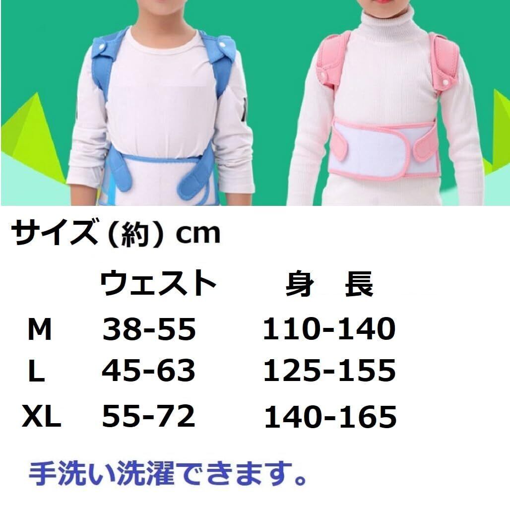 World Bridge 姿勢サポーターキッズ 背筋ベルト子供 姿勢ベルト子供 猫背補正 説明書付き (ブルー, L)