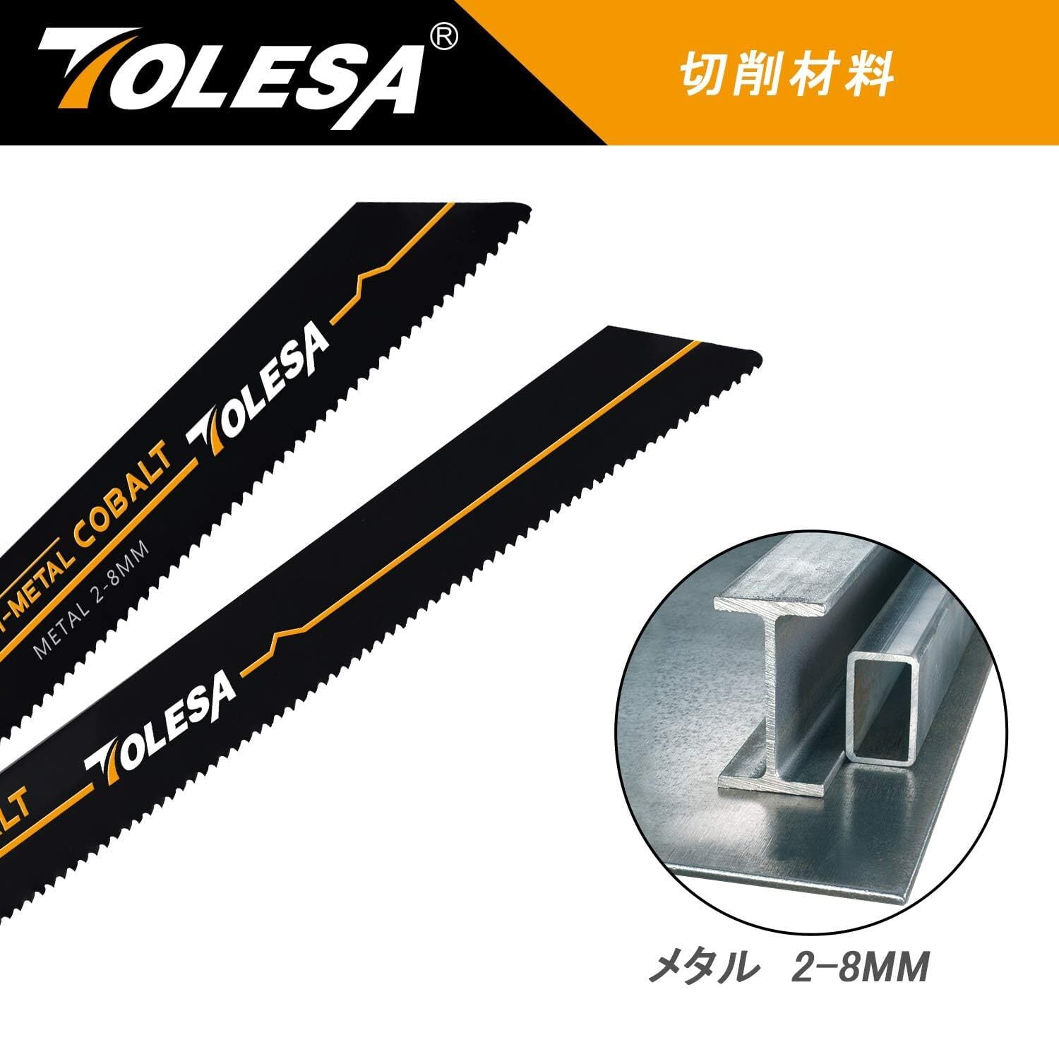 【コバルト含み】TOLESAレシプロソーブレードは8%コバルト含みのバイメタルの鋸の歯を採用して、普通のバイメタルブレードに比べてより硬く、ハードな切断作業の寿命を効果的に伸ばします。