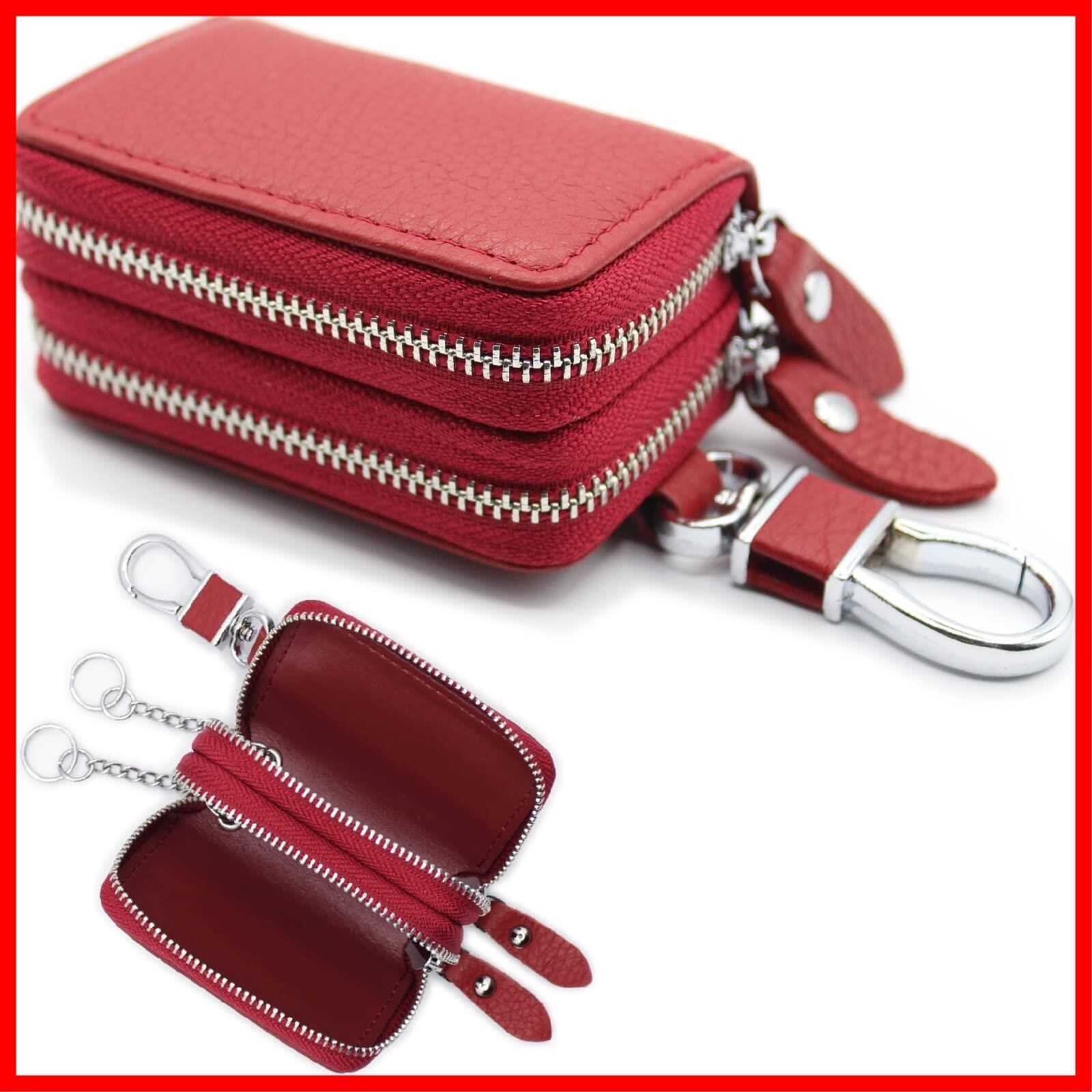 TOMOTHY スマートキーケース 2個収納 レディース メンズ スマートキー対応 ダブルファスナー 本革 カラビナ付き レッド