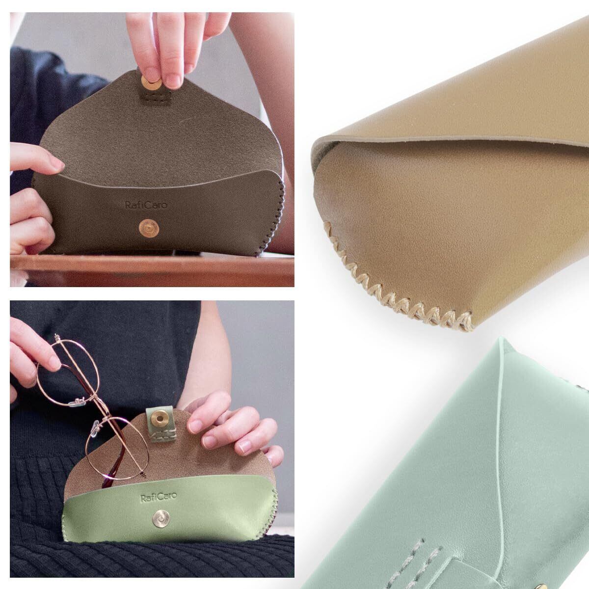 [RafiCaro] メガネケース 本革 コンパクト 革 イタリアンレザー マグネットボタン 眼鏡 メガネ サングラス ケース ステッチ 手縫い ハンドメイド仕上げ スリム