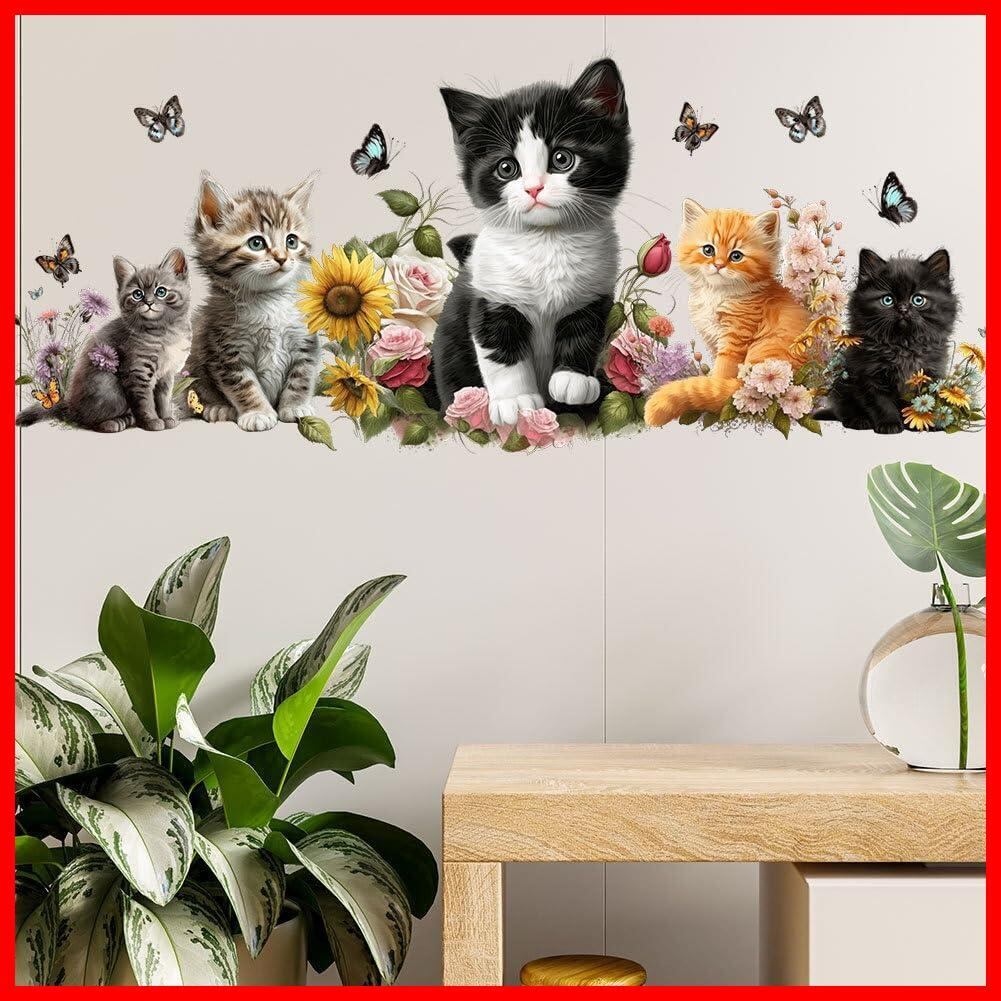 SMAOSTORE(また) ウォールステッカー かわいい 猫 ステッカー おしゃれ 花 蝶 動物 子供 部屋 寝室 ベッドルーム 幼稚園 教室 背景の壁 防水 はがせる ウォール ペーパー 壁紙 シール | ニコニコshops