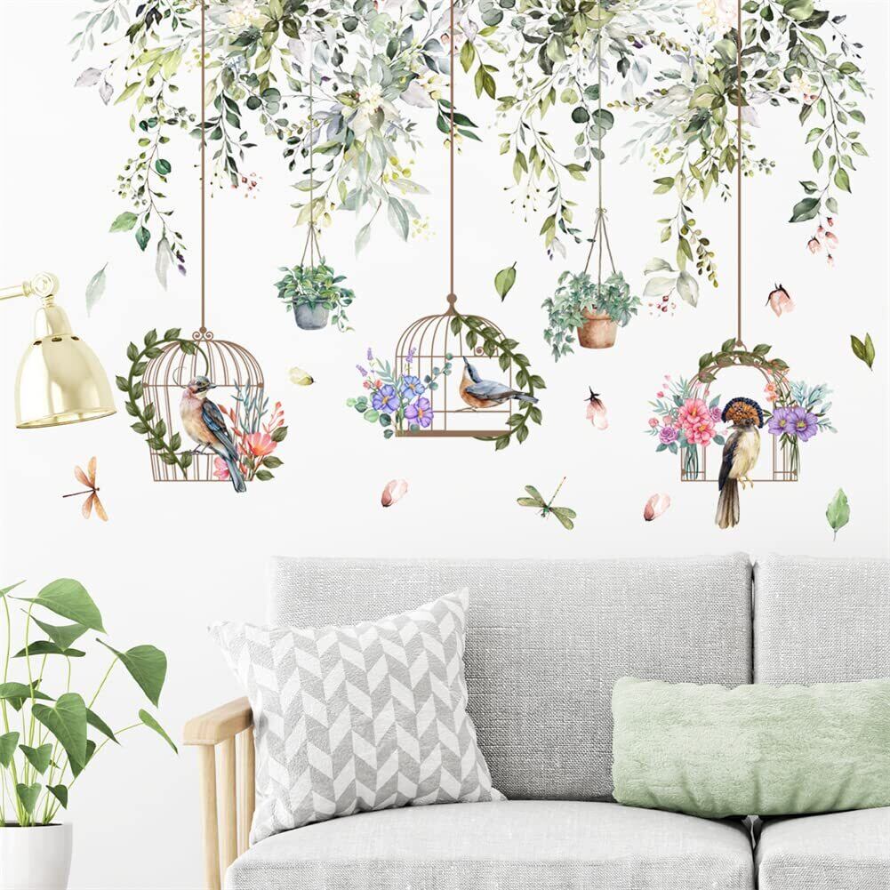 WOHAHA ウォールステッカー 植物 おしゃれ 葉っぱ ヴァインズ 鳥 鳥かご 花 植木鉢 おしゃれ 壁かざり はがせる 壁紙シール 防水 ウォールすてっかー 剥がせる ウォールシール リビングルーム ベッドルーム ルーム 装飾用壁紙 オシャレ 壁に貼る 粘着剤付き 壁飾り wall sticker decoration