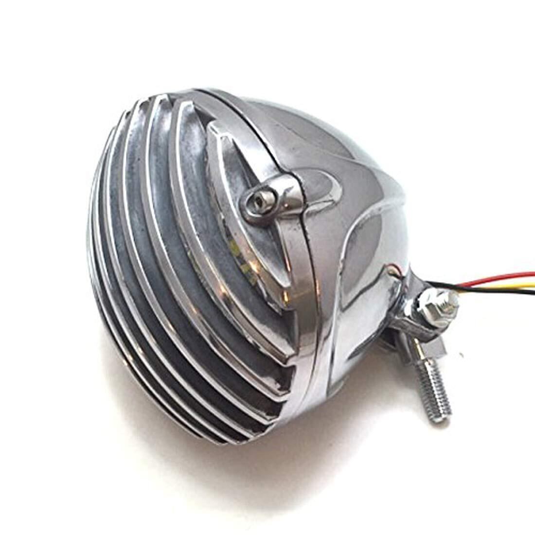 ONGMEIL 汎用4.5インチビンテージヘッドライト/バードケージグリル/ハーレーニュースクールボバーチョッパーオールドスクール/ポリッシュ (シルバー)