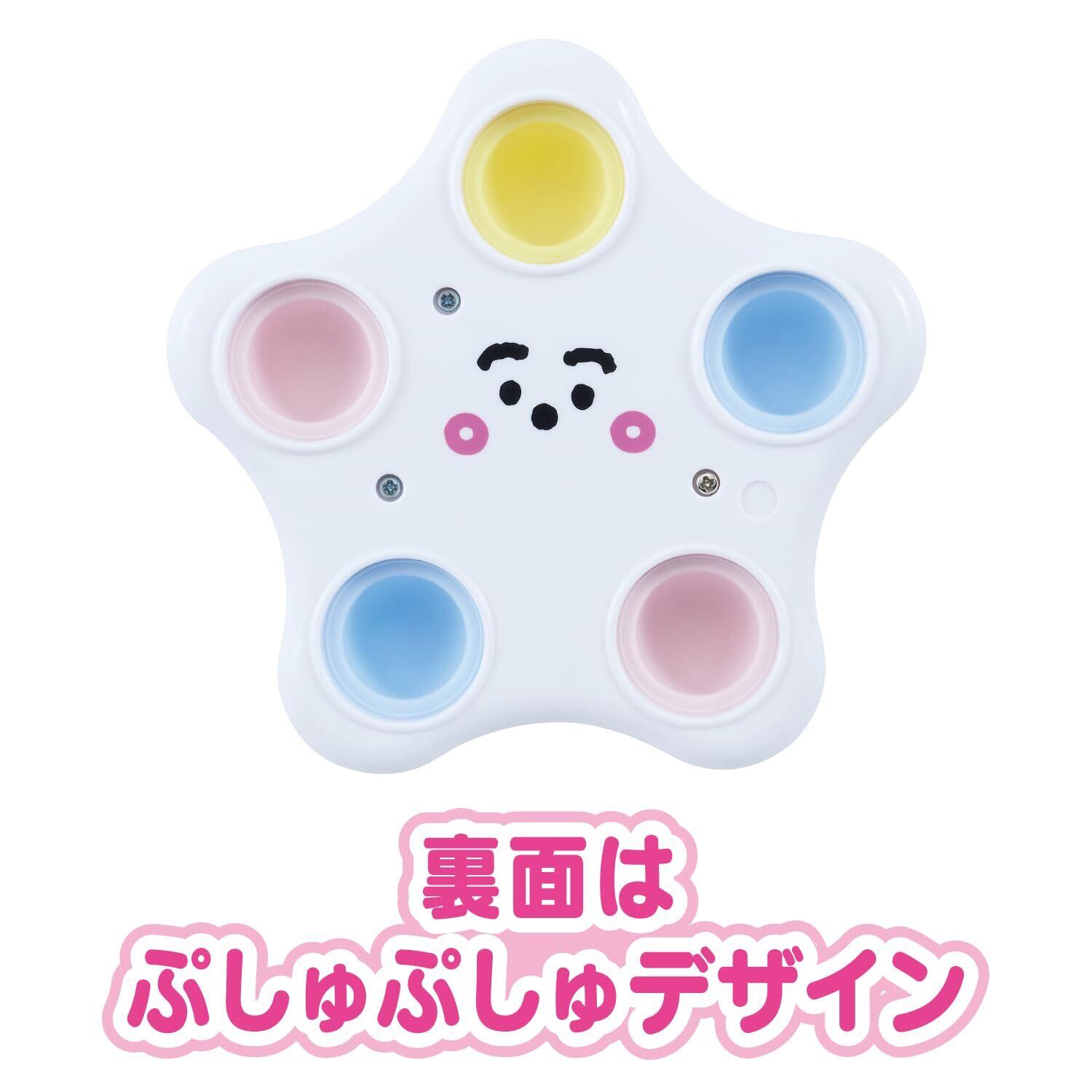 表面はぷしゅぷしゅとにゅうの仲良しデザイン、裏面はぷしゅぷしゅの顔がプリントされたデザインです。