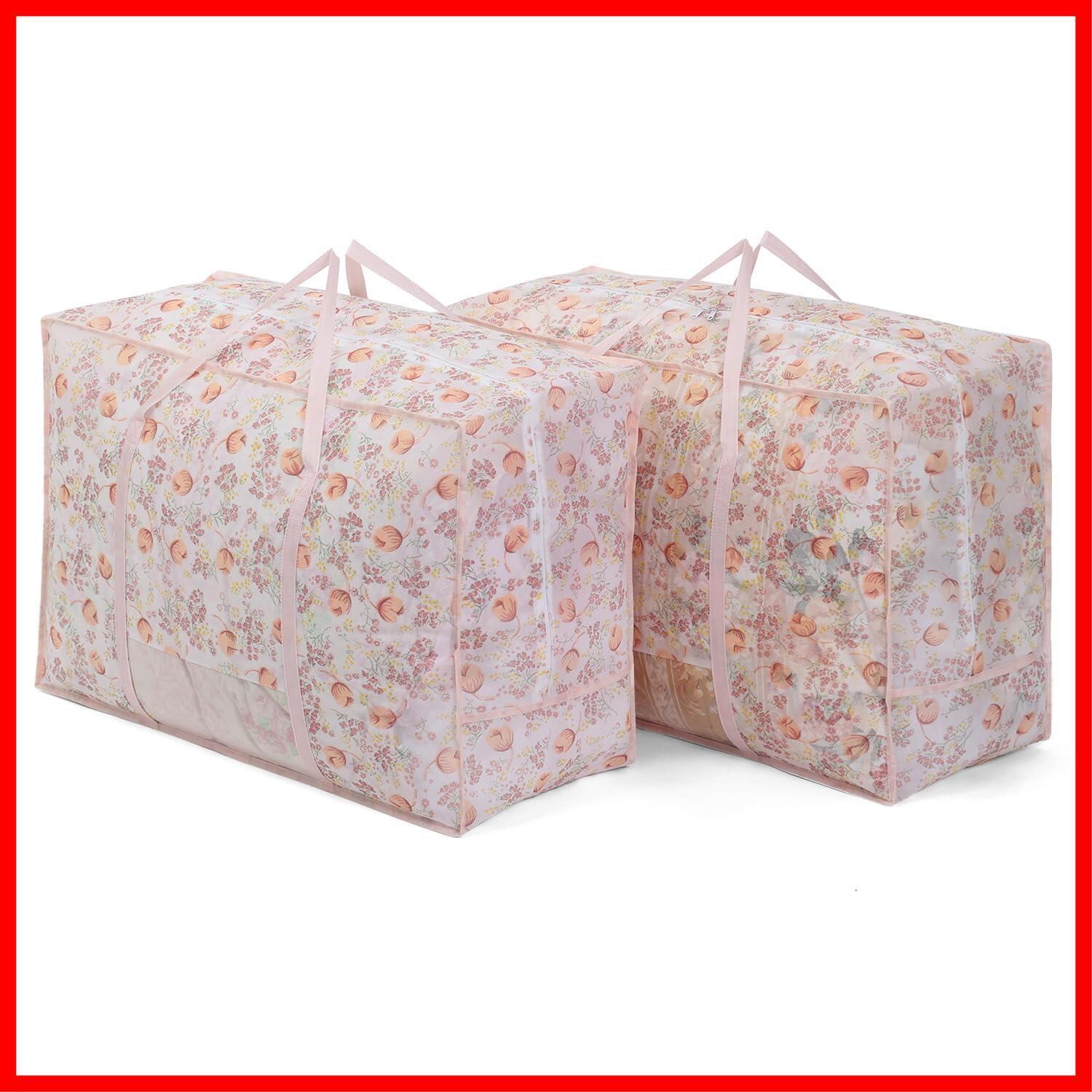 アストロ 羽毛布団収納袋 ホワイト チューリップ柄 2枚組 シングルサイズ・ダブルサイズ兼用 通気性の良い不織布製 掛け布団 羽根布団 収納バッグ 持ち手付き 収納ケース 収納ボックス 防塵 透明窓付き クローゼット 押入れ 折りたたみ 花柄 レトロ 168-05 | ニコニコshops