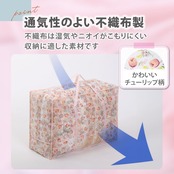 【商品仕様】:サイズ/約幅70×奥行30×高さ50cm、カラー/ホワイト、柄/チューリップ柄、内容/2枚、収納目安(1枚あたり)/シングルサイズもしくはダブルサイズの羽毛布団1枚、材質/ポリプロピレン・ポリエチレン
